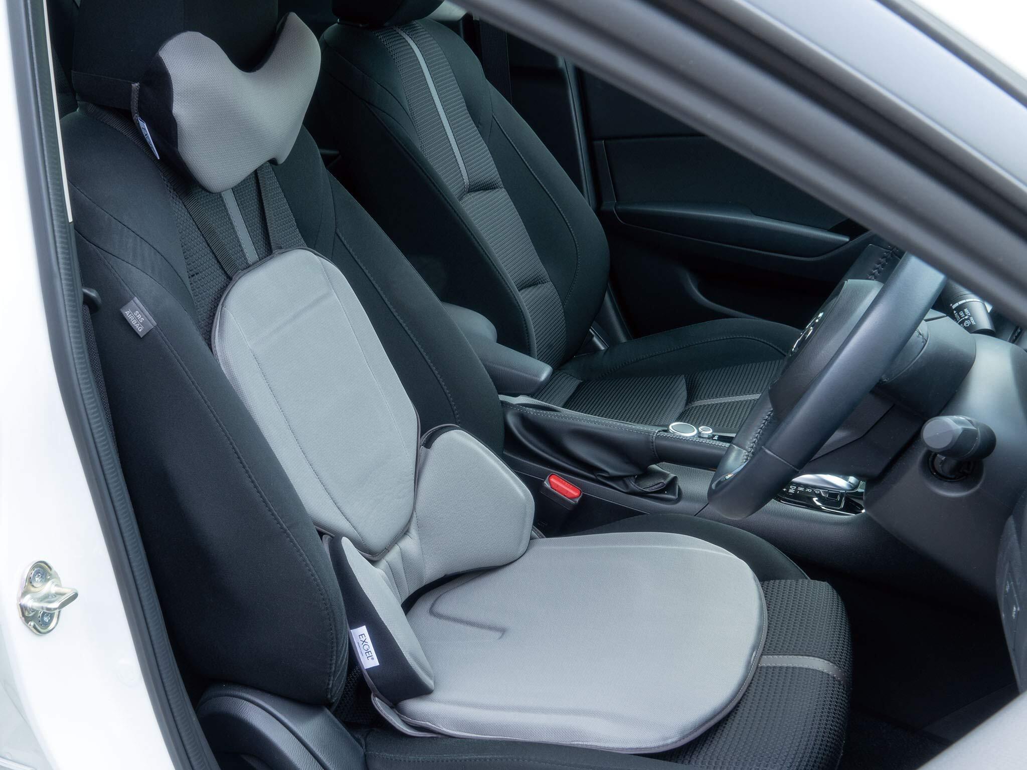 ハグドライブネッククッションの特長 エクスジェルが首から後頭部をやわらかくサポートします。 頸椎をサポートすることで首や肩の負担が減り、よりリラックスした姿勢を実現します。 装着はカーシートのヘッドレストに付属のベルトで固定するだけで、かんたんにお使いいただけます。 ハグドライブのシートクッション、バッククッションといっしょにお使いいただくと、 よりストレスの少ない姿勢へ導き、エクスジェルの効果を体感いただけます。