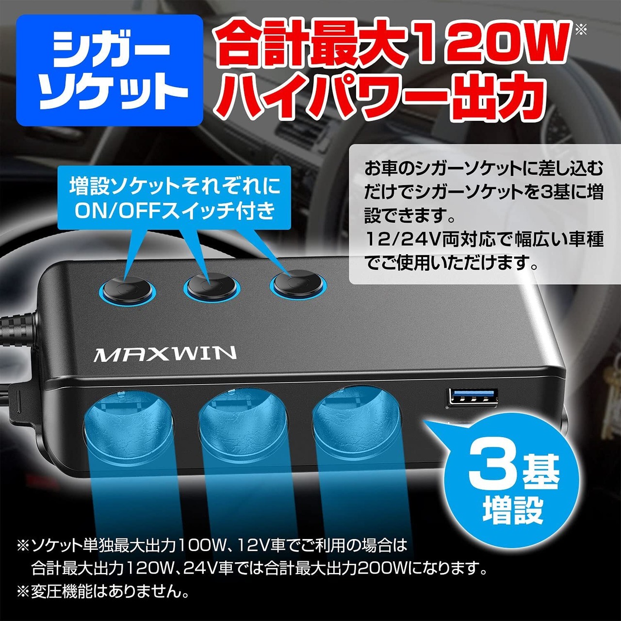 【新春セール】MAXWIN 3連シガー シガーソケット 増設 USB タイプC PD QC3.0 急速充電 車載充電器 ソケット 分配器 スイッチ付き カーチャージャー 電圧計 12V 24V Quick Charge 3.0 車内 テレワーク PCA31 | ニコニコSHOP