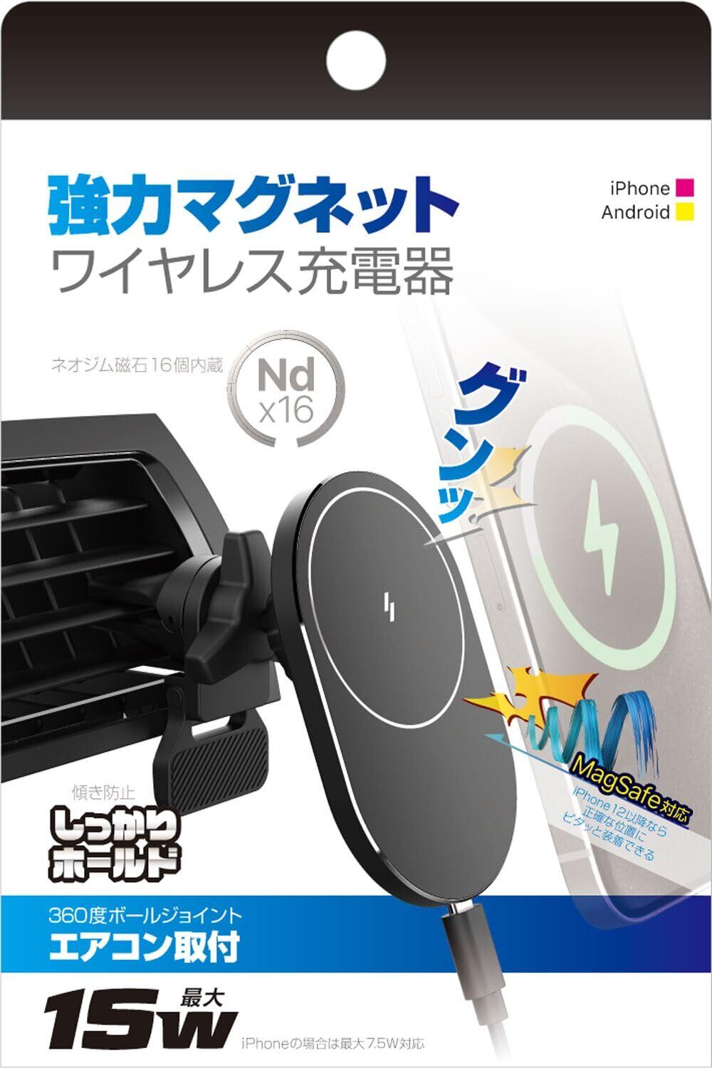 カシムラ 強力ネオジム磁石吸着!薄型マグネットワイヤレス充電器 エアコン取り付け NKW-46