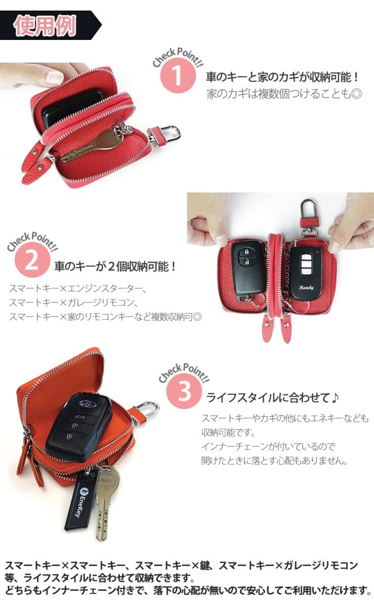 また、キーケース内に収めたスマートキーの無用な落下を防止するため、キーチェーンも内臓した親切設計。