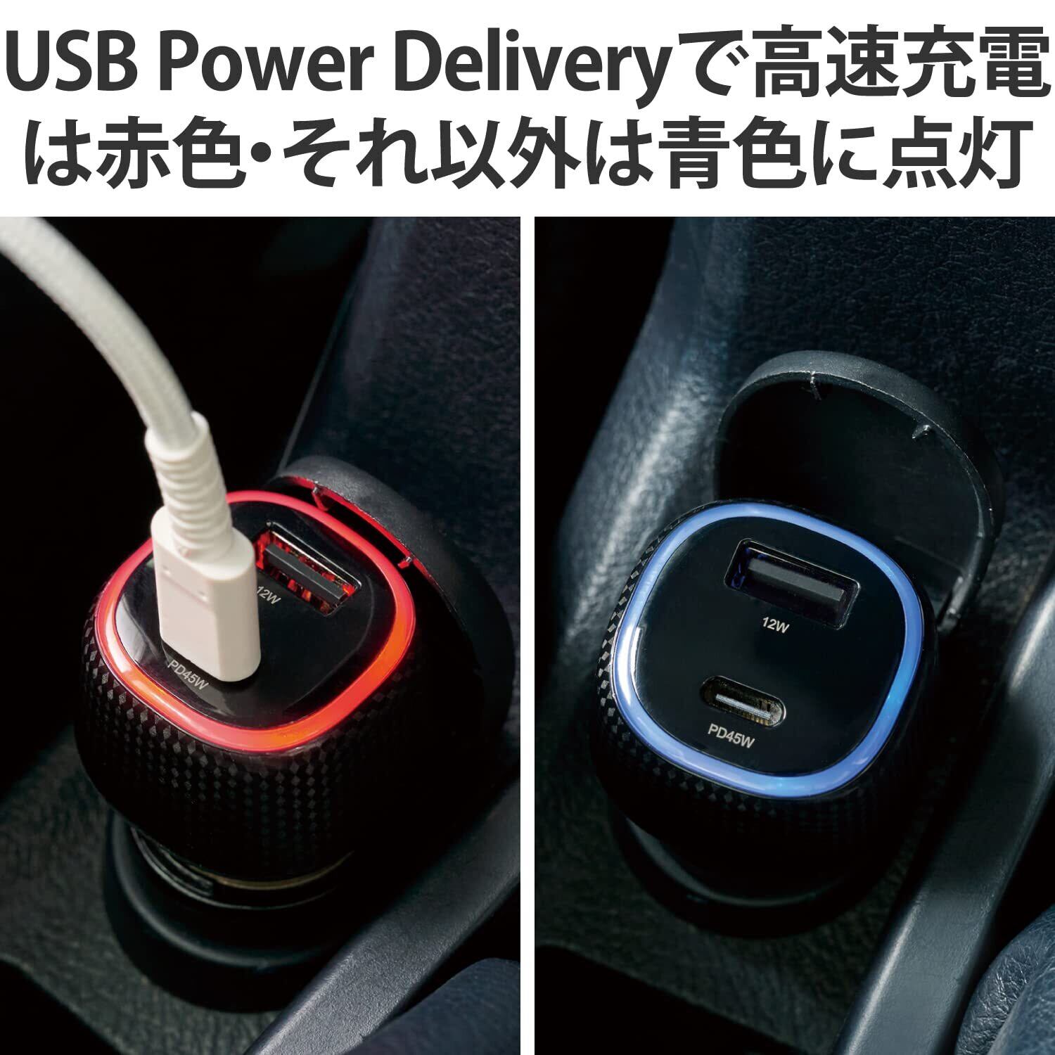■自動車のアクセサリーソケットに差し込むことで、USB Power Delivery対応のノートパソコンやスマートフォンを車で超高速充電できる車載充電器です。