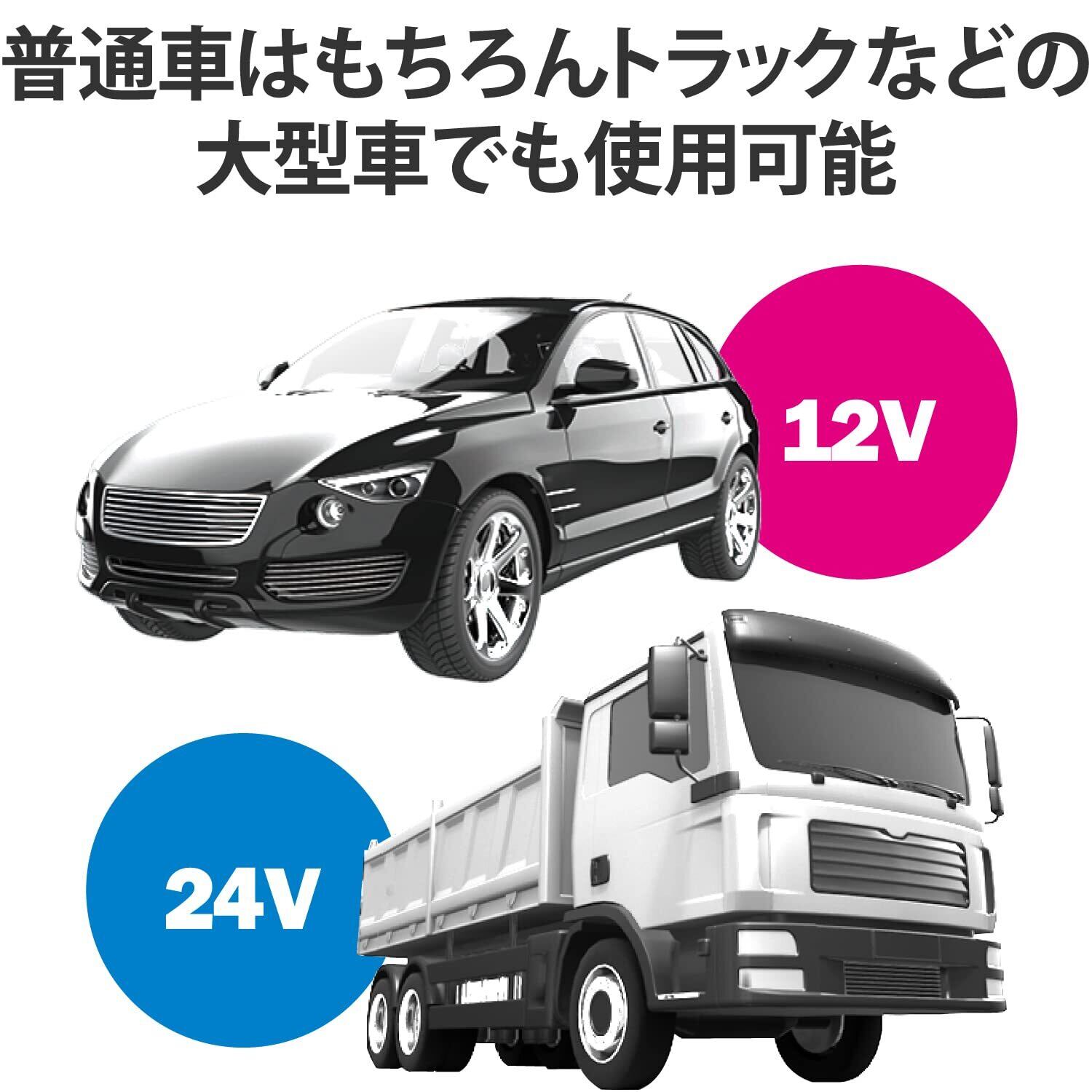 ■12V/24V入力に対応し、普通車はもちろん、トラックなどの大型車でも使用できます。
