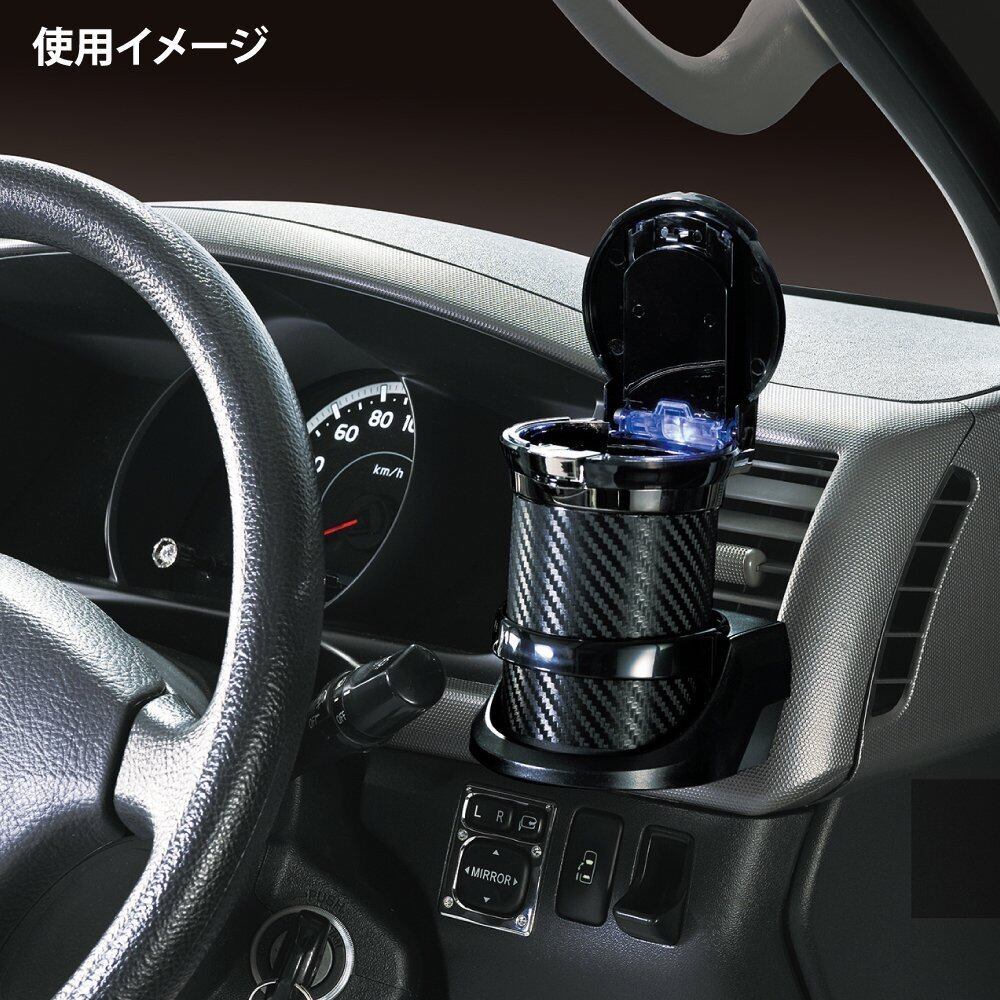 カーメイト(CARMATE) 車用 灰皿 愛煙缶プレミアム ドリンクホルダー型 カーボン調 LED付き DZ186