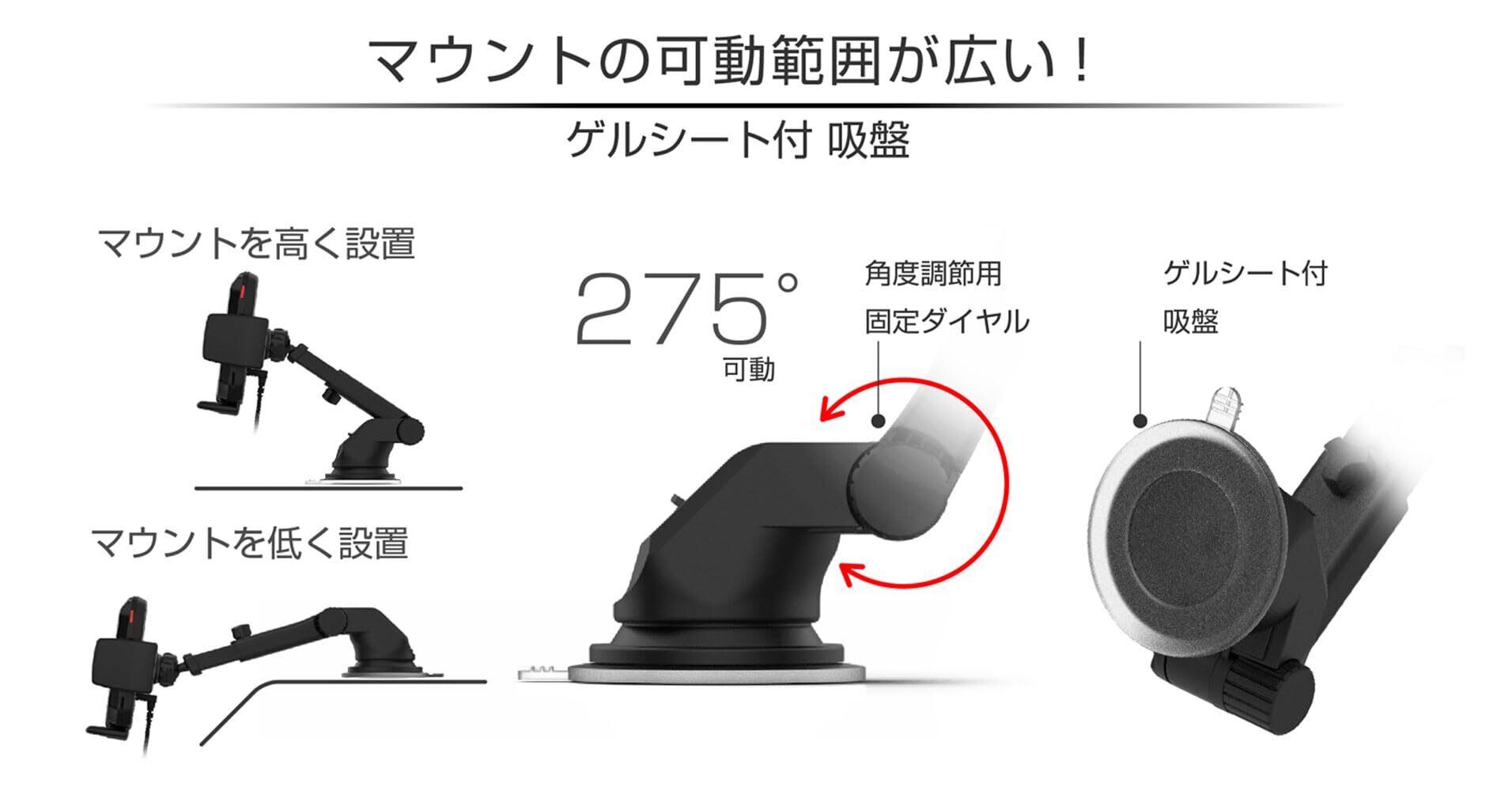 ●ボールジョイントで、取り付け後も360°見やすい位置に角度調整が可能。