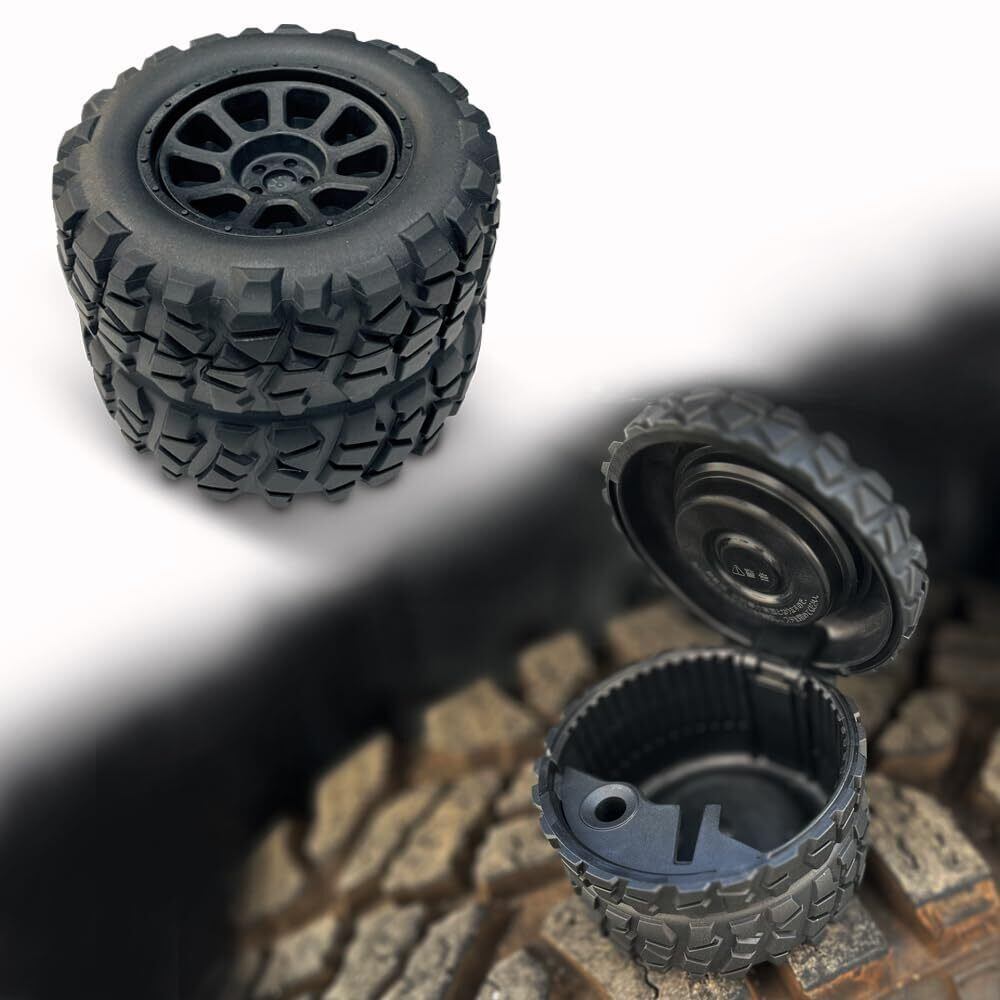 オフロード用タイヤデザインの置き型灰皿。マグネット取付けで好きな向きに回転して固定可能。スーパースリムの太さまで(5~8mm)対応の消火穴とタバコ置き。