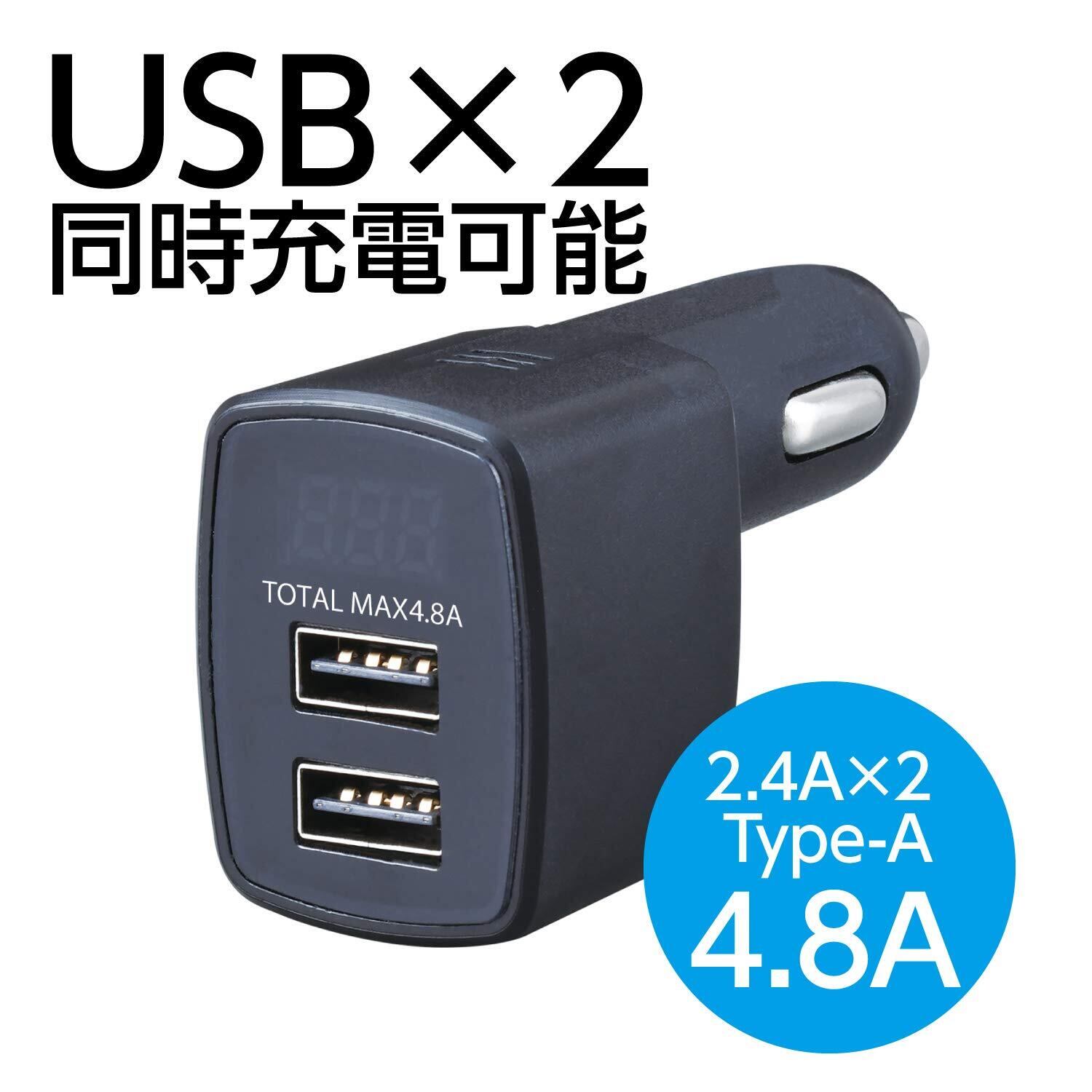 【USB合計出力4.8A】USBポート2口搭載し、1ポート最大2.4Aまで出力します。