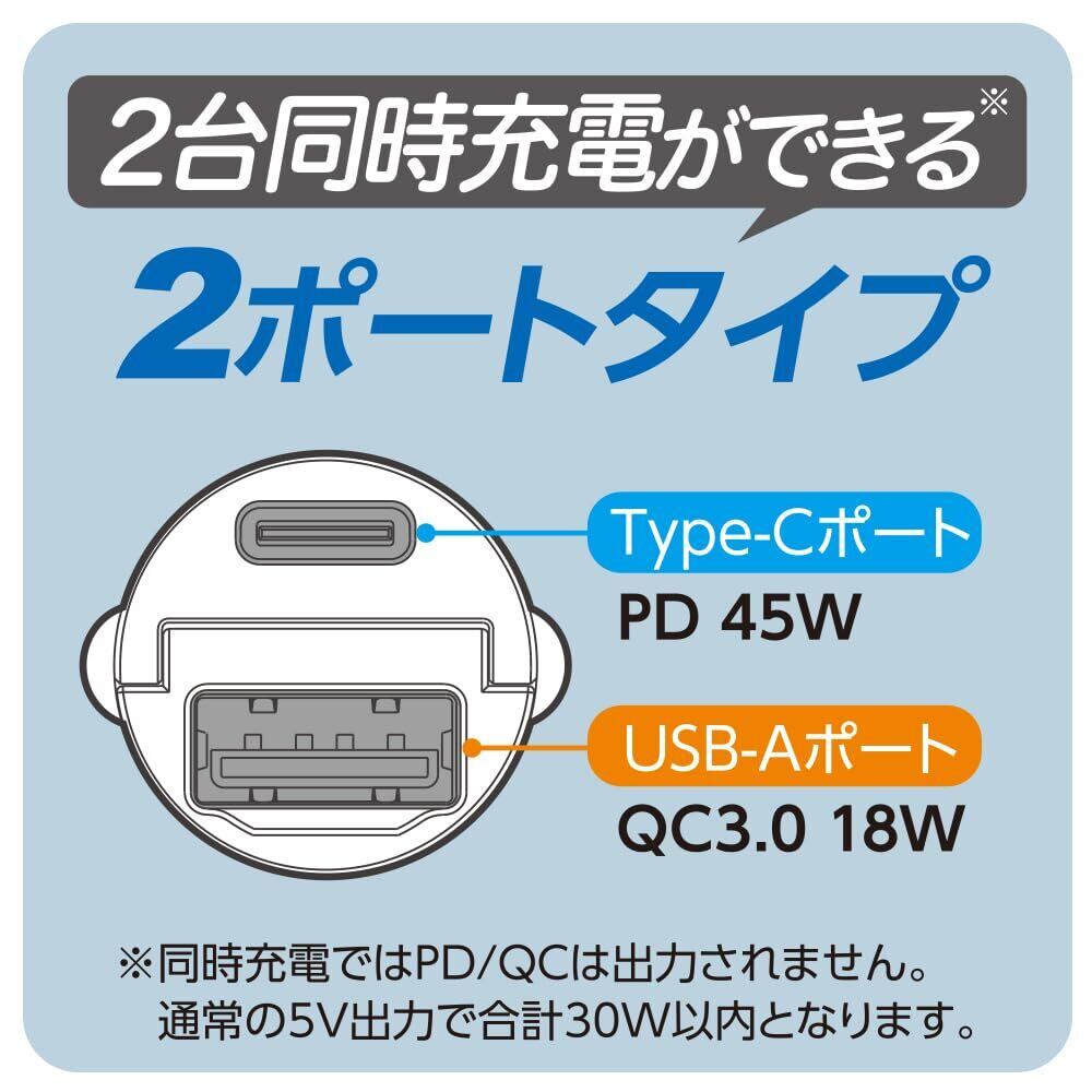 ナカバヤシ(Nakabayashi) Digio2 超小型 カーチャージャー Type-C 1ポート + USB A 1ポート 45W PD充電対応 ブラック Z1002