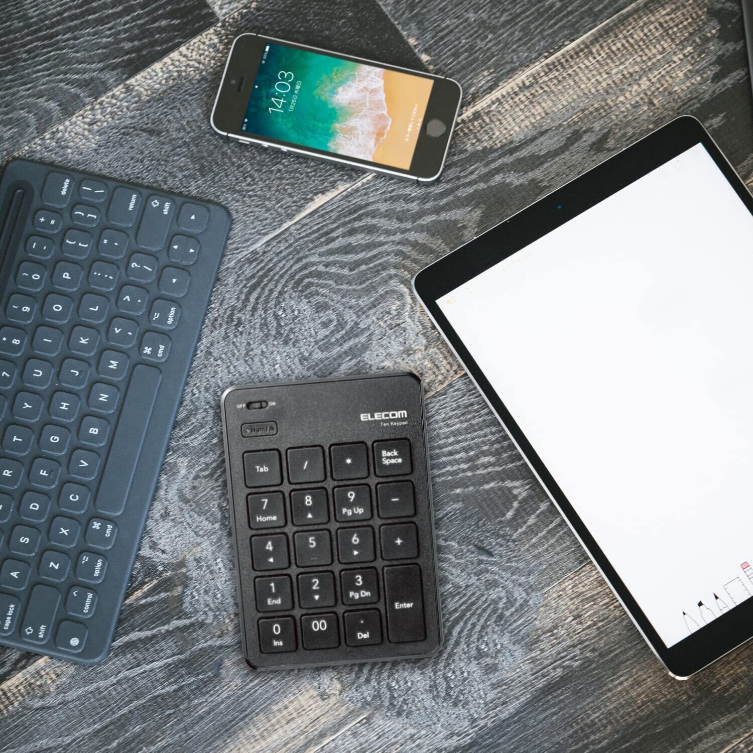 最薄部がわずか6.5mmの薄型設計で、場所を選ばずに使用できるBluetooth(R)薄型テンキーパッドです。