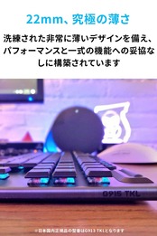 ・【22mm究極の薄さ】G913 TKLは、これまでの設計と開発の常識を覆す製品です。洗練された非常に薄いデザインを備え、パフォーマンスと一式の機能への妥協なしに構築されています。優れた耐久性と快適性を誇り、激しいゲーミング セッションに対応できるG913 TKLは、新世代のゲーミング メカニカル キーボードと呼ぶに相応しい製品です。