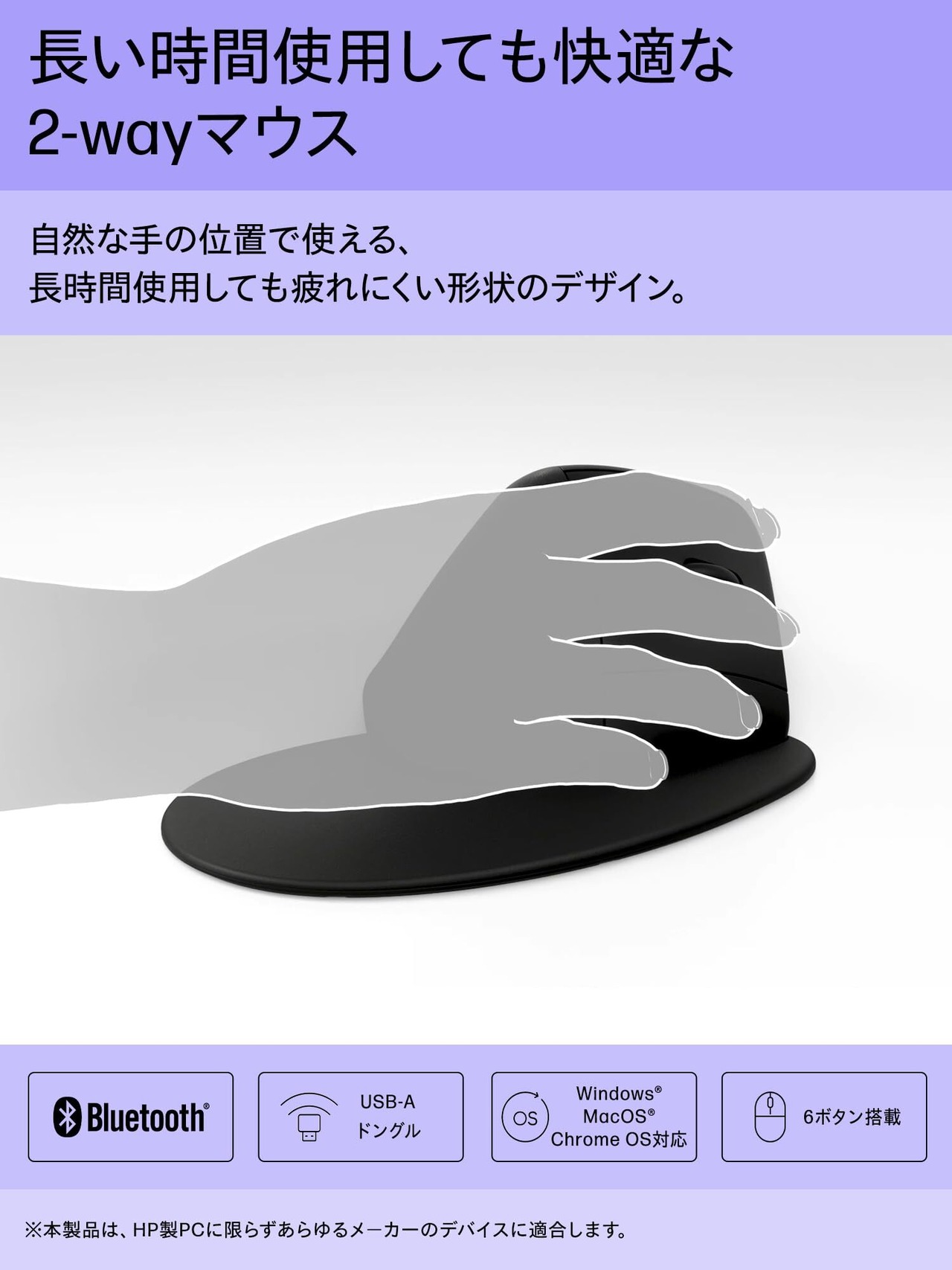 HP エルゴノミクス ワイヤレスマウス HP 920 エルゴノミック バーティカル マウス Bluetooth USB-C充電 USB2.4Ghz 3台マルチ接続ドングル疲れにくい 垂直マウス 快適 リストレスト付き