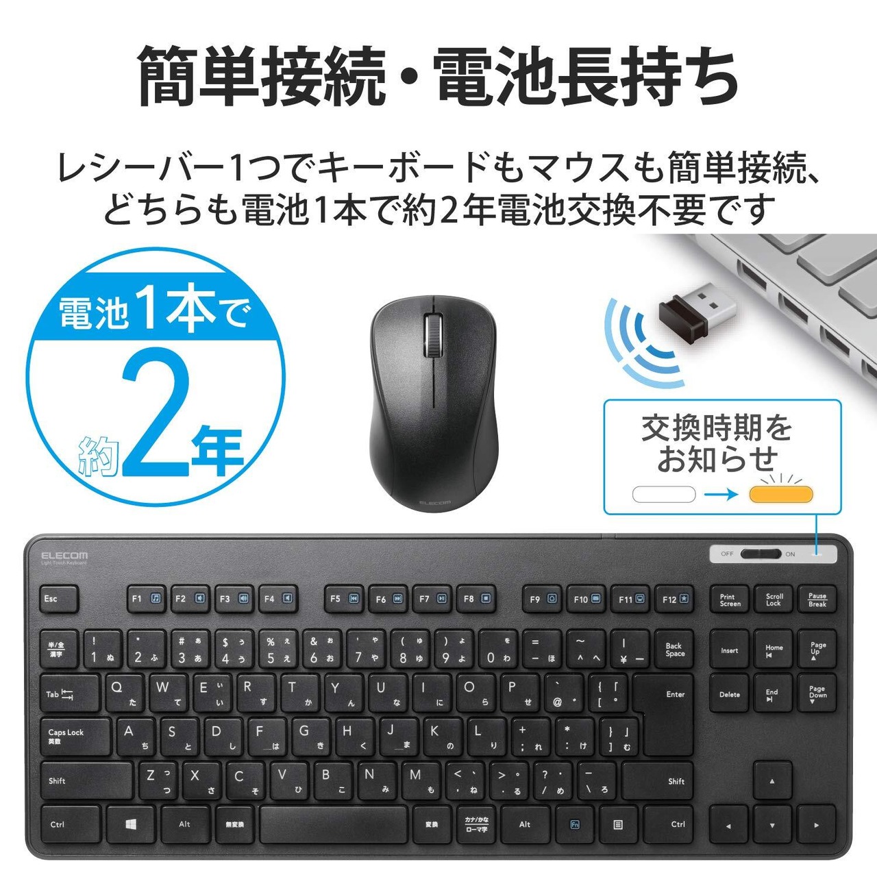 エレコム ワイヤレスキーボード マウスセット TK-FDM109MKBK 薄型 メンブレン式 抗菌 コンパクト テンキーレス ブラック