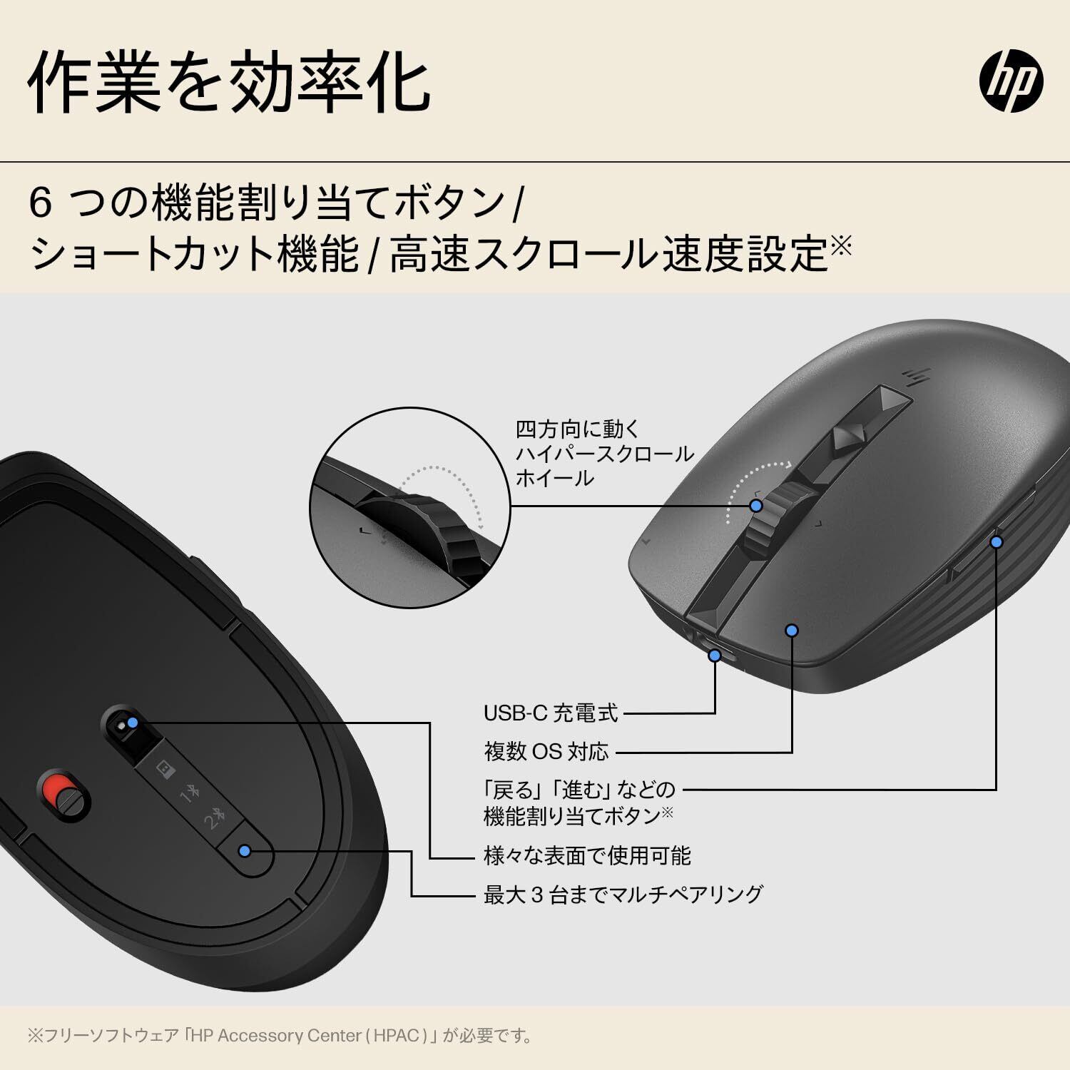 【人気商品】HP ワイヤレスマウス 無線 マウス HP 710 リチャージャブル ワイヤレス 静音 Bluetooth Windows Mac ChromeOS 3台接続対応 USB-C充電式 切替式高速スクロールホイール(ブラック)【国内正規品】 | ニコニコSHOP