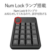 NumLockのオン/オフの状態がひと目でわかるLEDランプを装備しています。