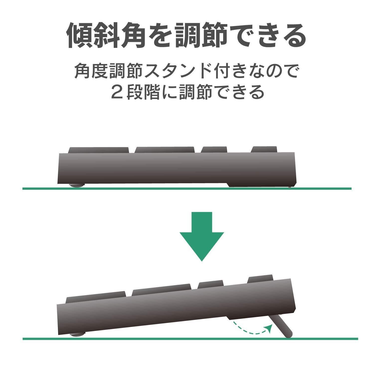 ■姿勢に合わせて傾斜角を2段階で調整できる角度調整スタンドが付いています。