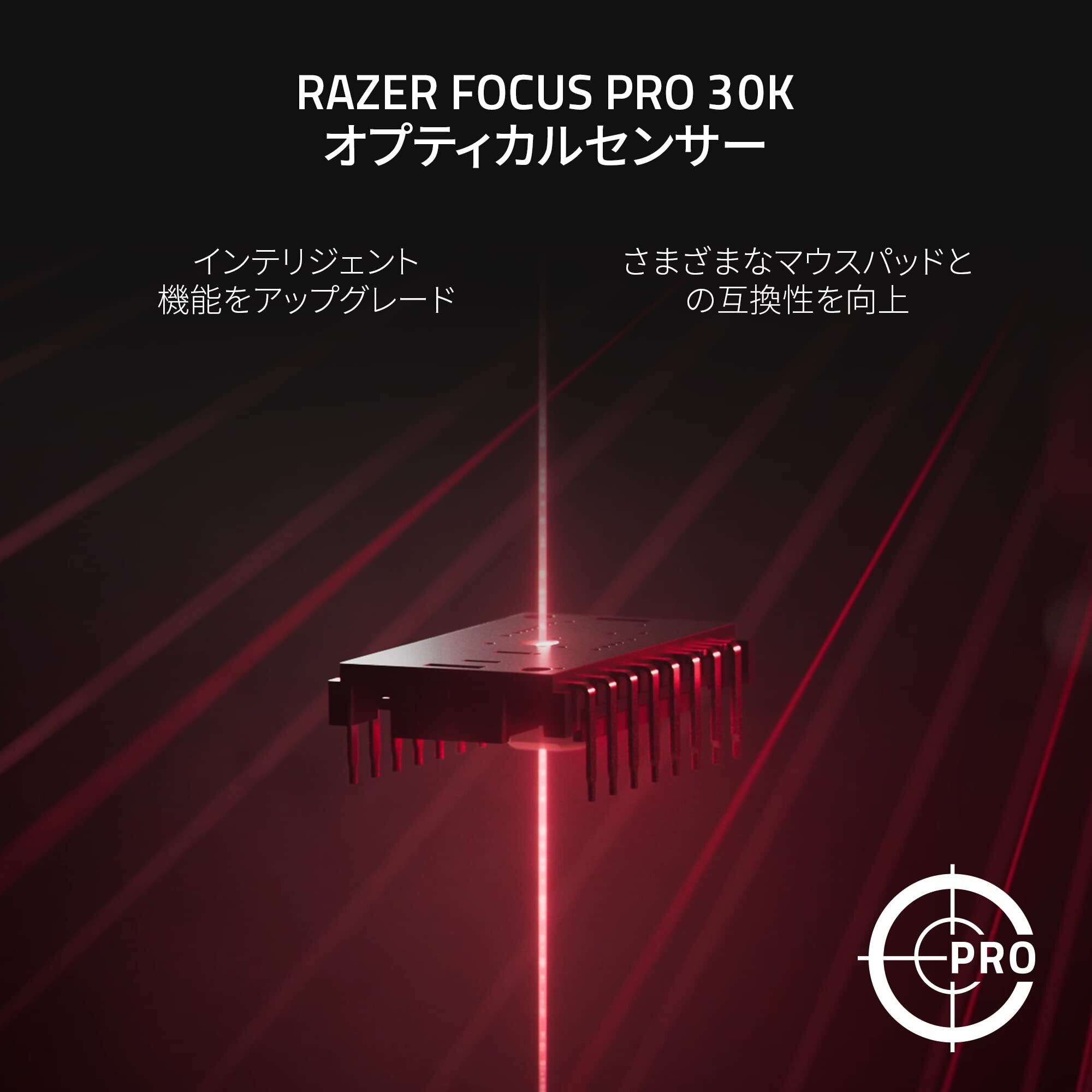 【Razer Focus Pro 30K オプティカルセンサー】前モデルのセンサーより正確なトラッキング/進化したAI機能/ガラス表面にも対応と、究極までに洗礼されたセンサーとなっており、より高い精度でのマウス操作が可能になっています。