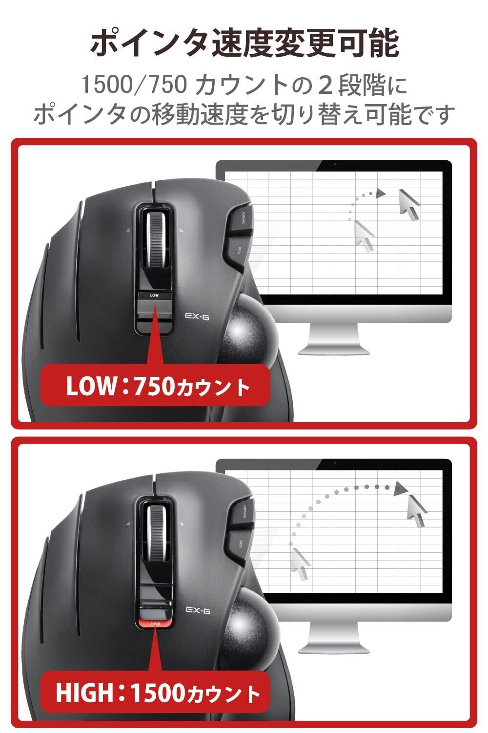 エレコム ワイヤレス トラックボールマウス EX-G 左手用 6ボタン チルトホイール(左右スクロール) ブラック M-XT4DRBK