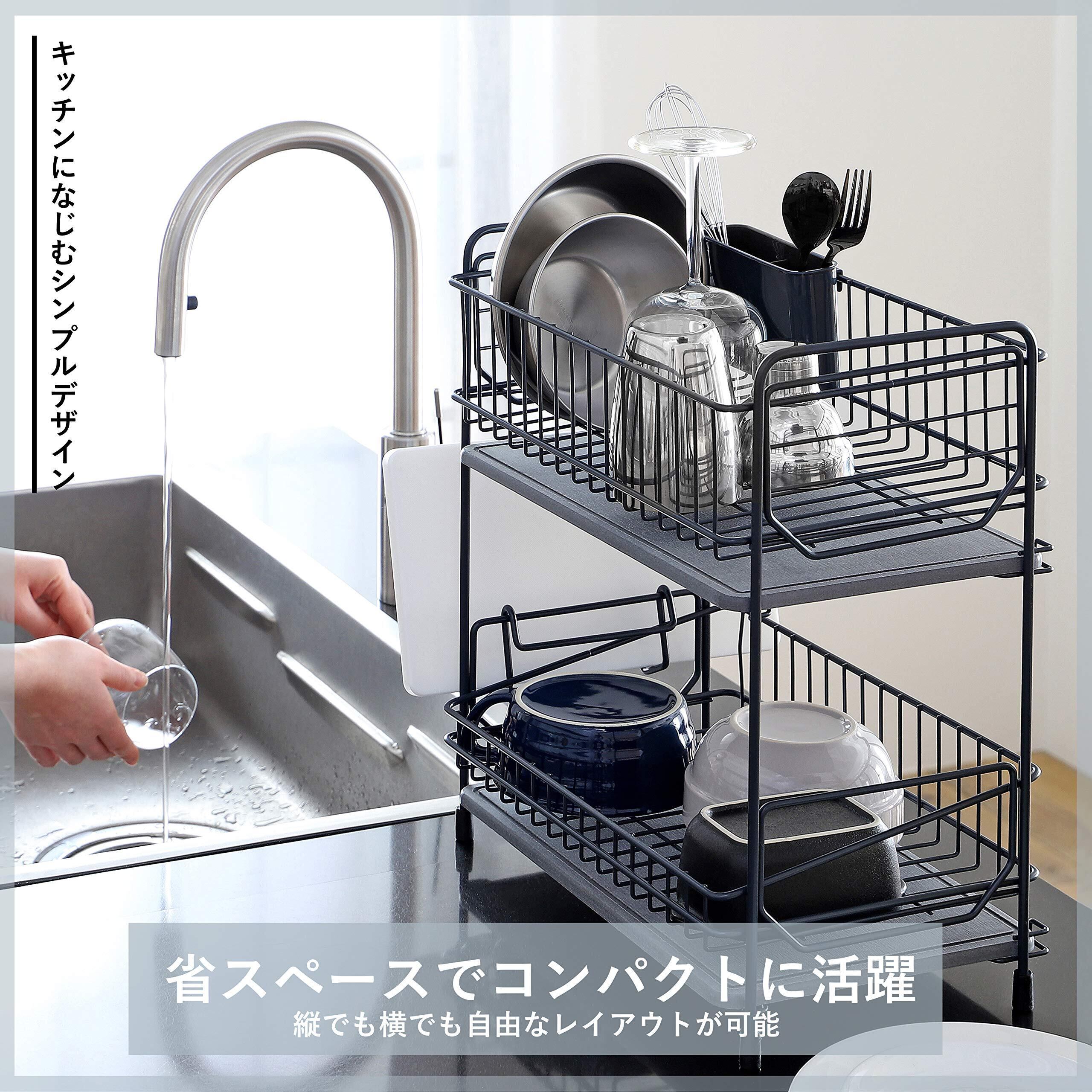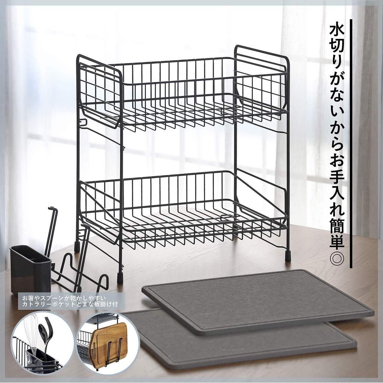 パール金属 鉄 食器 水切り かご バスケット 2段 スリム ダークグレー 珪藻土トレー付 AZ-5514