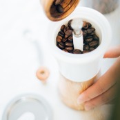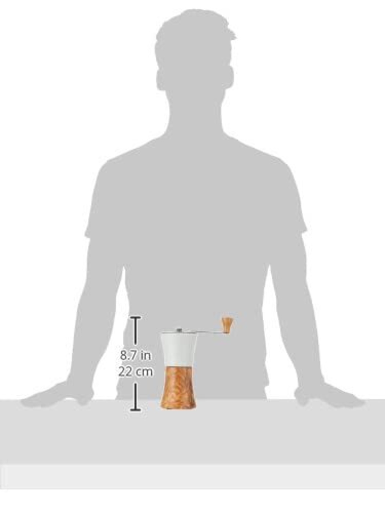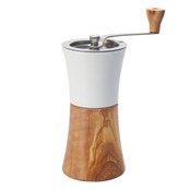 セラミック製のホッパーにオリーブウッドの粉受けでナチュラルテイストなコーヒーミルです。調節ツマミを回してお好みの粗さに調節できます。握りやすく挽きやすいくびれ形状で使いやすい形状です。