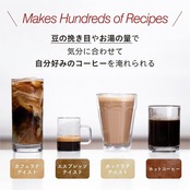 コーヒーの挽き目や量、お湯やミルクを追加することで、味わいのバリエーションが豊富