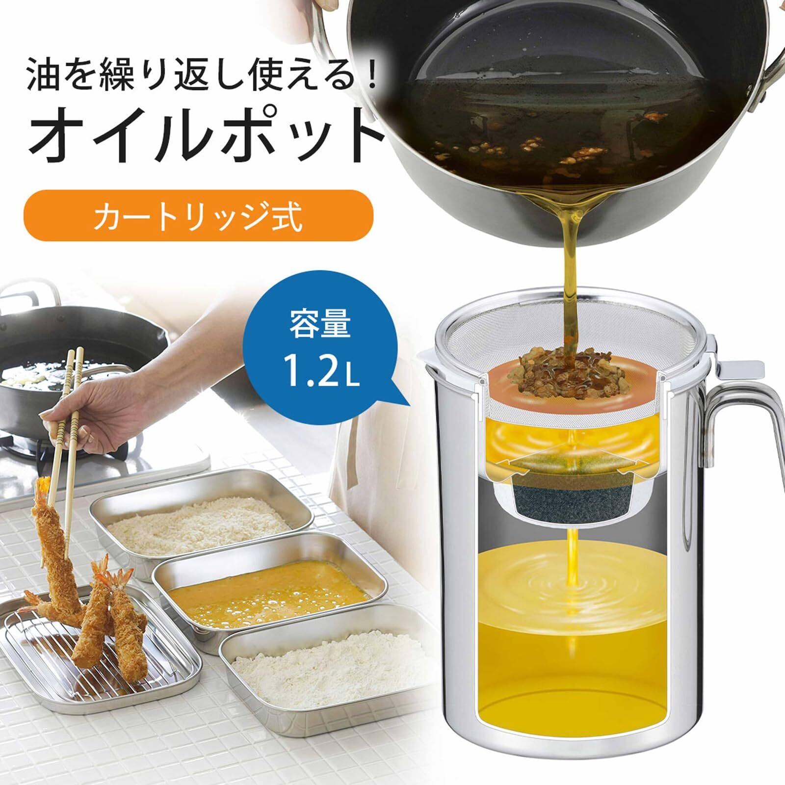 【数量限定】下村企販 オイルポット 1.2L 活性炭カートリッジ式 【日本製】 サビにくい 液だれしにくい 油をキレイに再生 シンプル 油こし器 ろ過 揚げ物油入れ ステンレス 燕三条 26305 | ニコニコSHOP