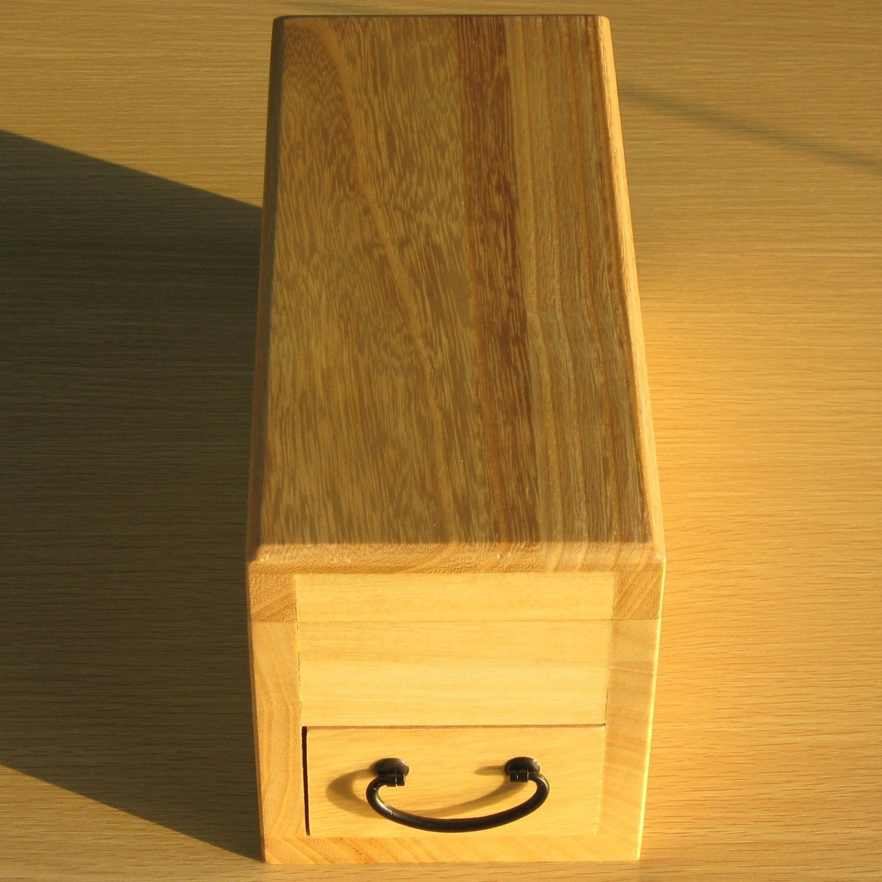 鰹節削り器本体には木目が美しい桐を使用。適度な重量感で鰹節を安定して削る事ができる。