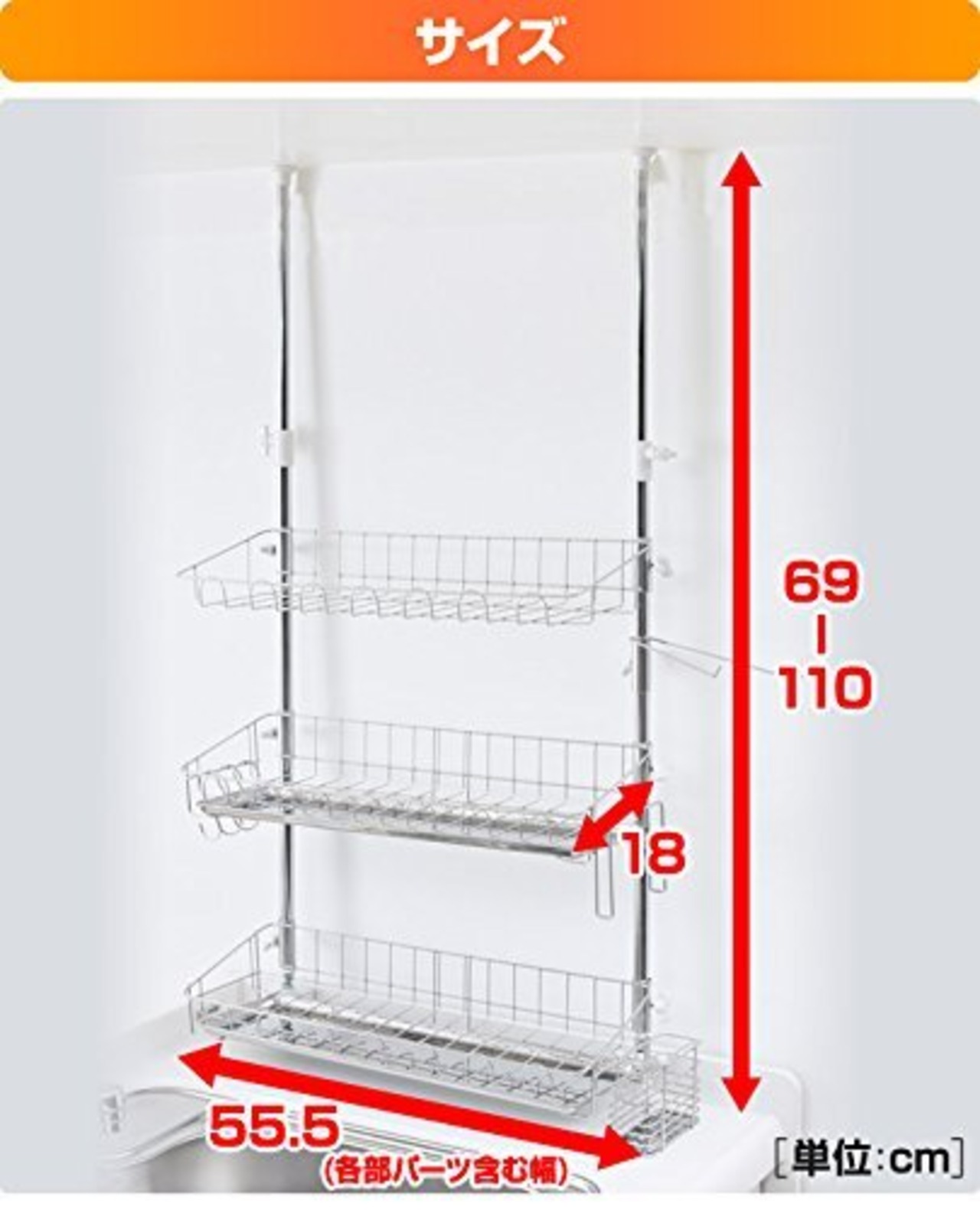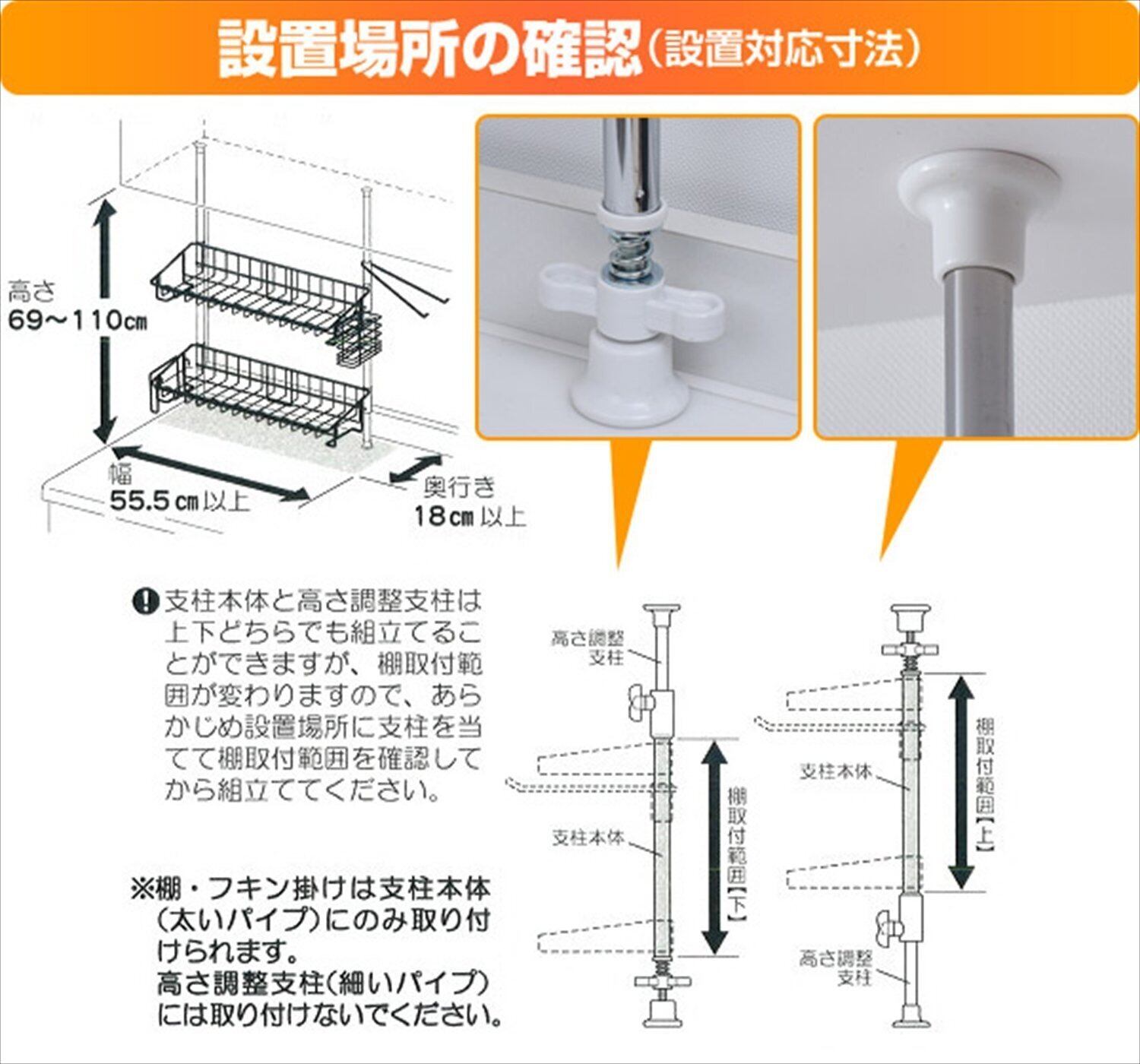 設置対応寸法:幅55.5cm以上/奥行18cm以上/高さ69-110cmまで