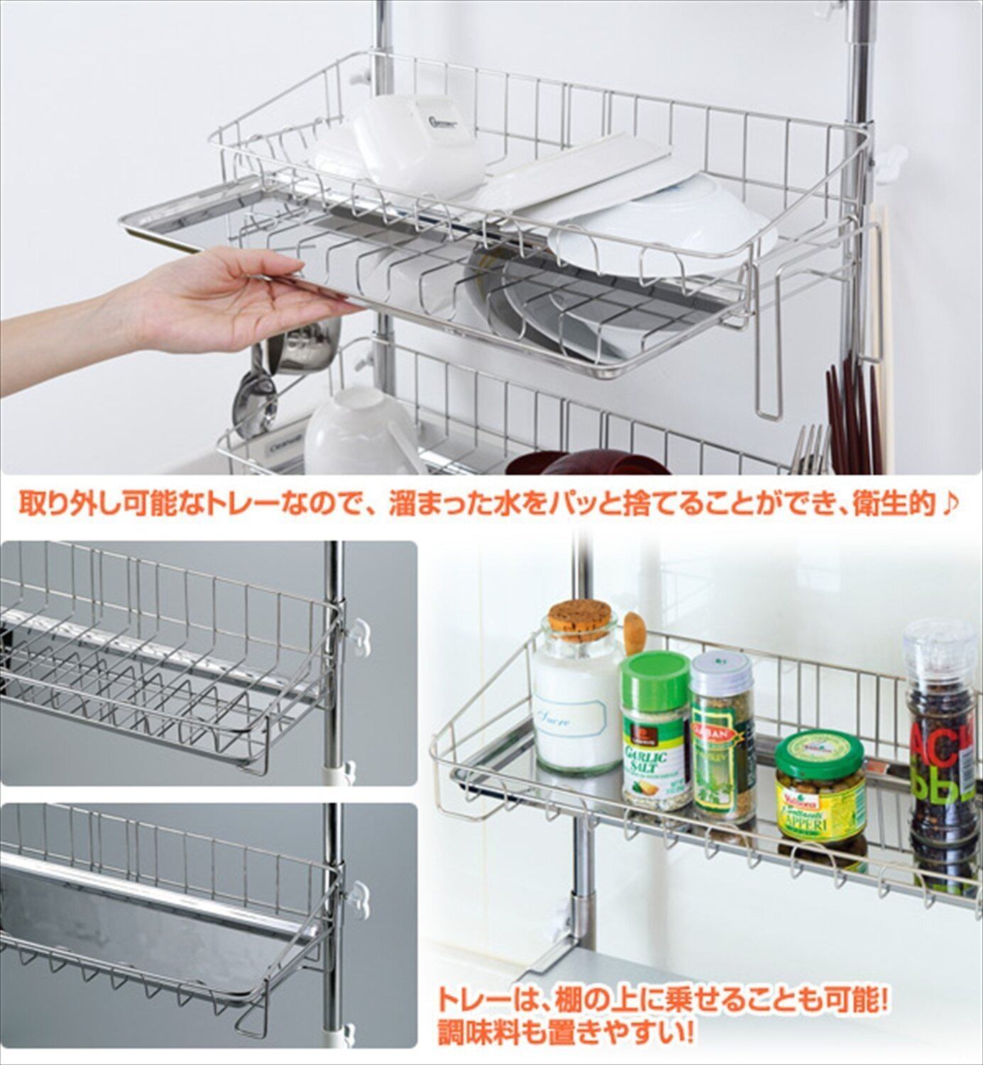 アーネスト 【日本製】 水切りかご (突っ張り) ステンレス 3段 (ワイド) 隙間収納 大手飲食店愛用ブランド A-76027