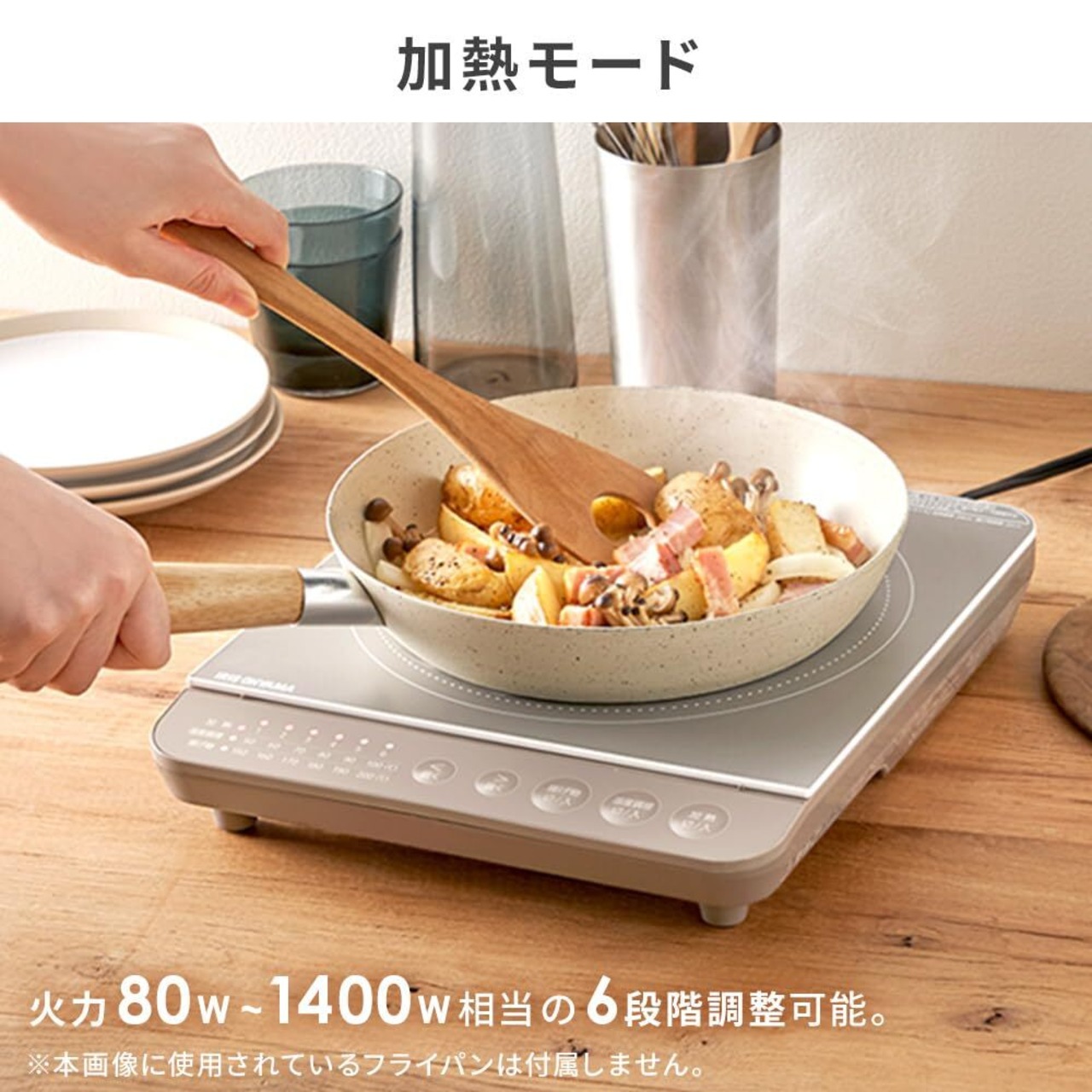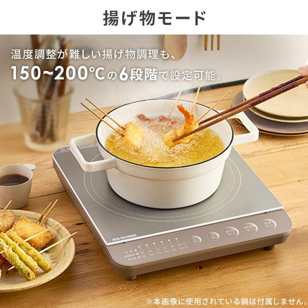 火力調節/加熱:6段階(火力)80W相当、200W相当、500W、700W、1000W、1400W/温度調理(約):6段階(水温)50℃、60℃、70℃、80℃、90℃、100℃/揚げ物調理(約):6段階(油温)150℃、160℃、170℃、180℃、190℃、200℃