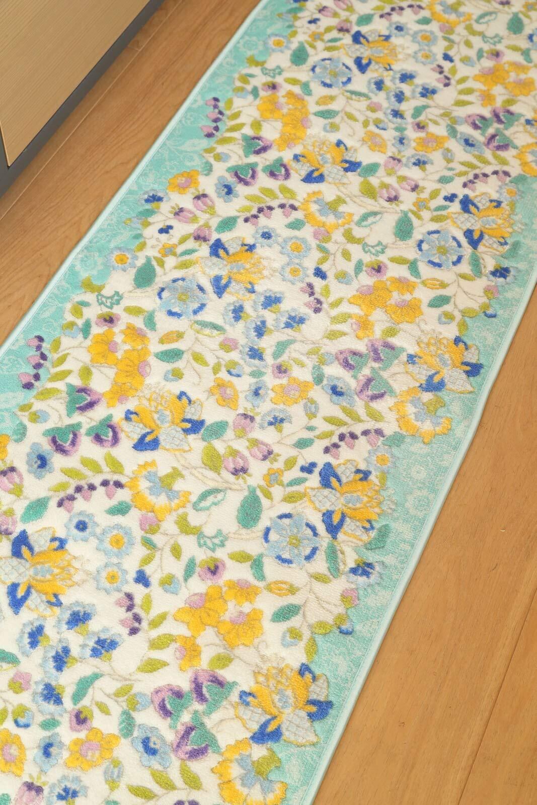 川島織物セルコン MINTON ミントン キッチンマット ガーデンナチュール ブルーグリーン 50×200cm FT1230
