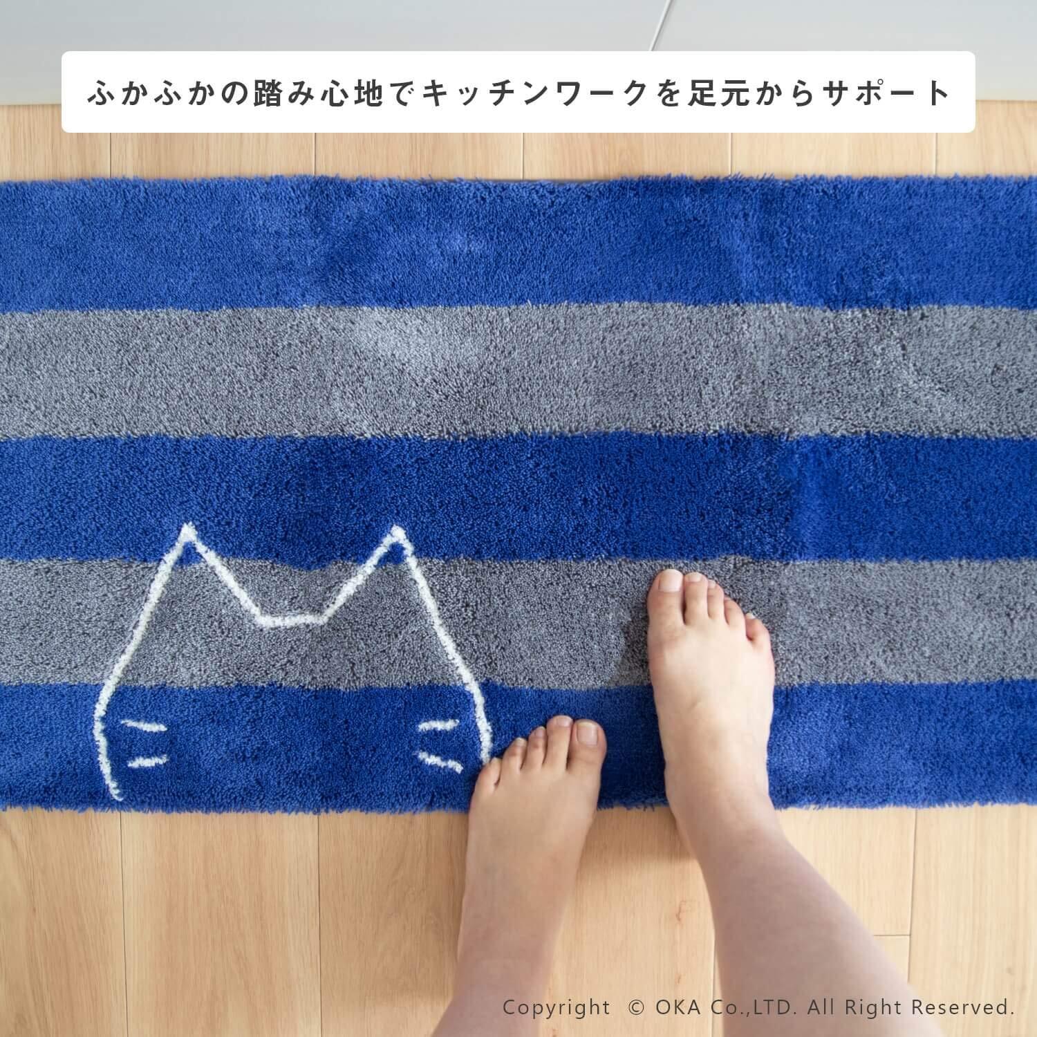 オカ うちねこ キッチンマット 約45×240cm (ブルー)