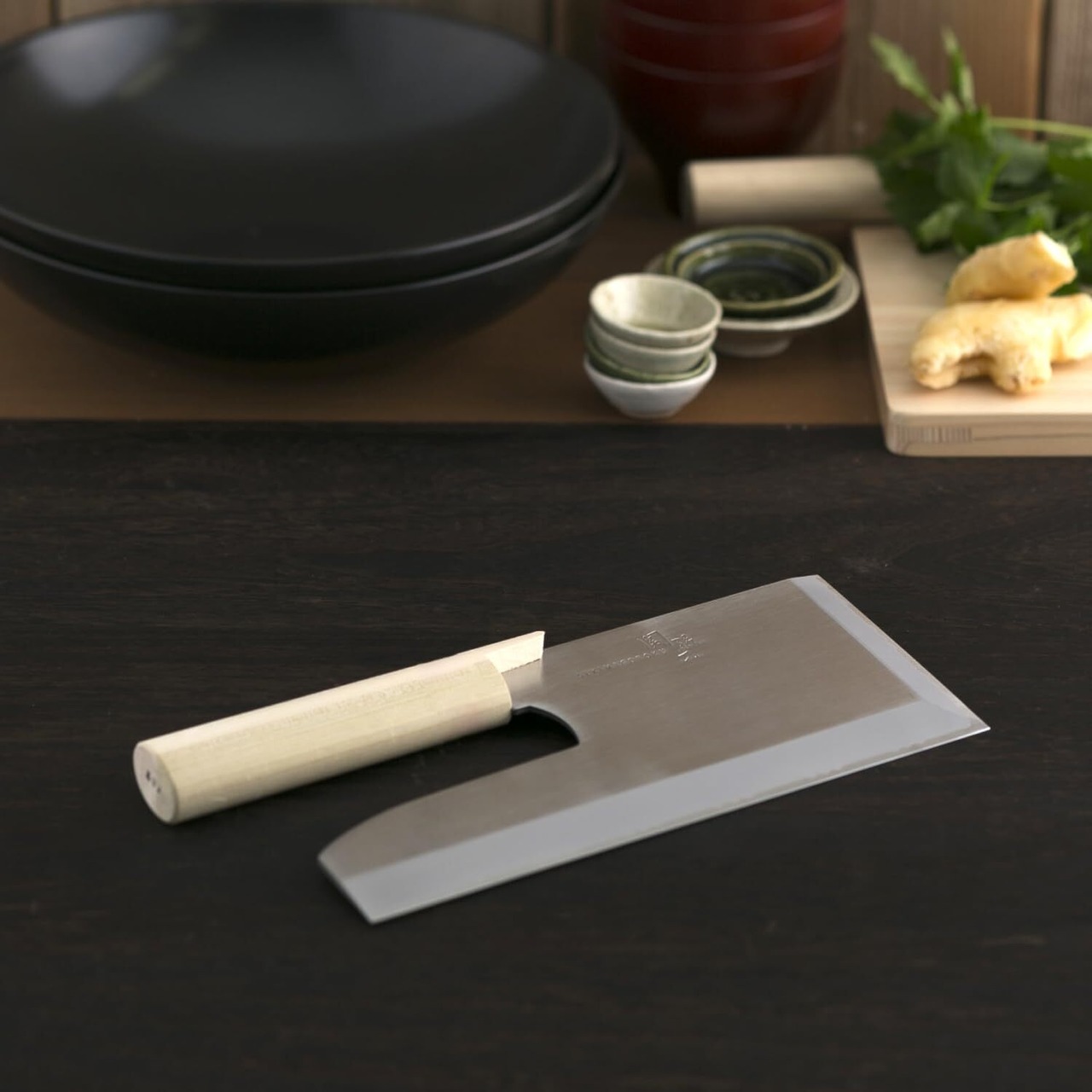 重量感ある本格的なそば切り包丁。