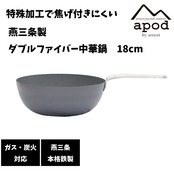 【人気商品】[アーネスト apod] 中華鍋 キャンプ 18cm 軽量 【日本製】 鉄製なのにくっつきにくい 焦げ付きにくい (ファイバーライン) 熱が伝わりやすい サビにくい 大手飲食店愛用ブランド ブラック A-77691 燕三条 | ニコニコSHOP