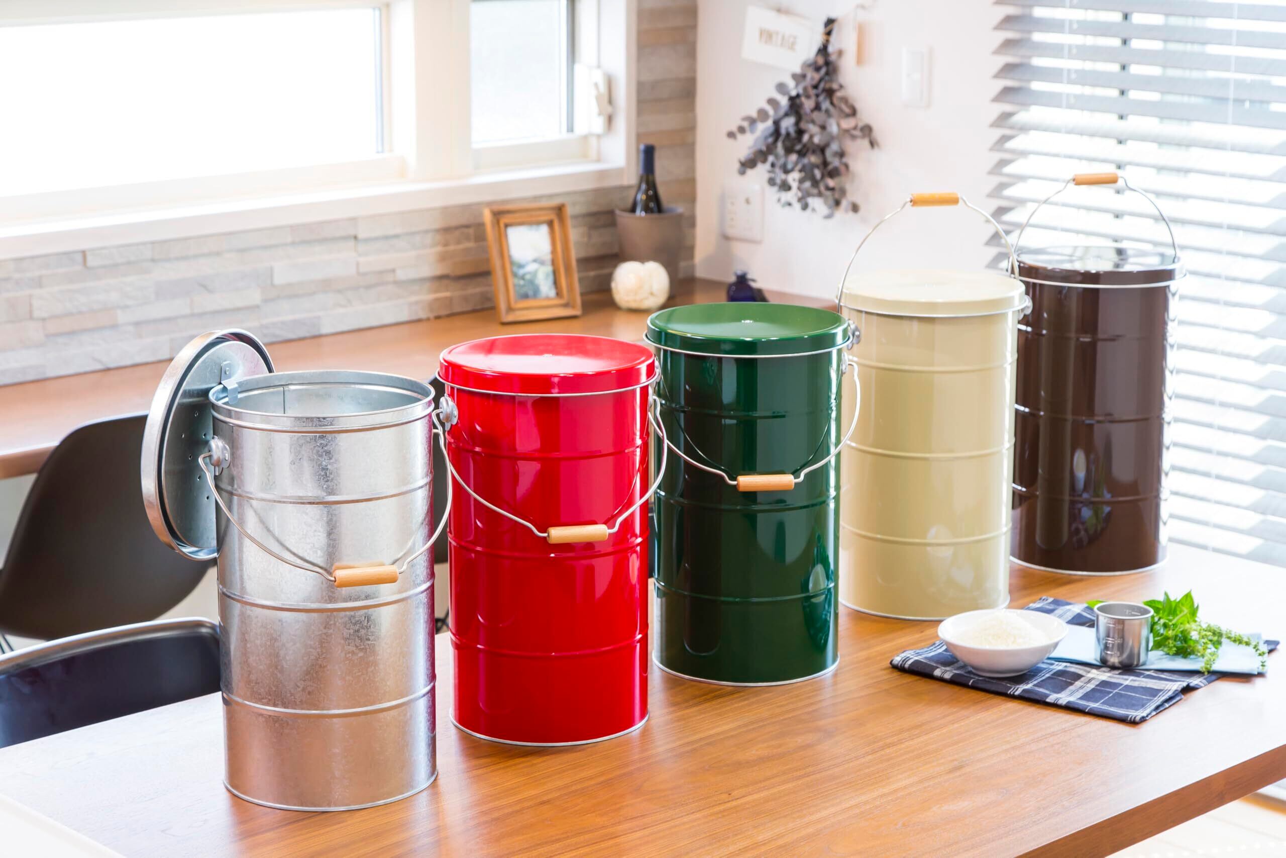 100%国内生産で商品はひとつひとつ手作り、素材には塩化ビニールや合成樹脂などの不燃物を使用しておらず、全てリサイクル可能な環境に優しいものです。 ふたは二重ふたになっており、防虫剤や乾燥剤を間に入れることができて便利。 フック付きなので、ふたを開けてお米を取り出す時、邪魔にならないようにかけられるのもポイント。