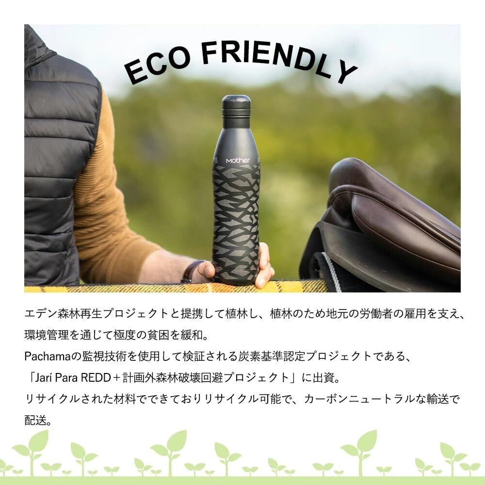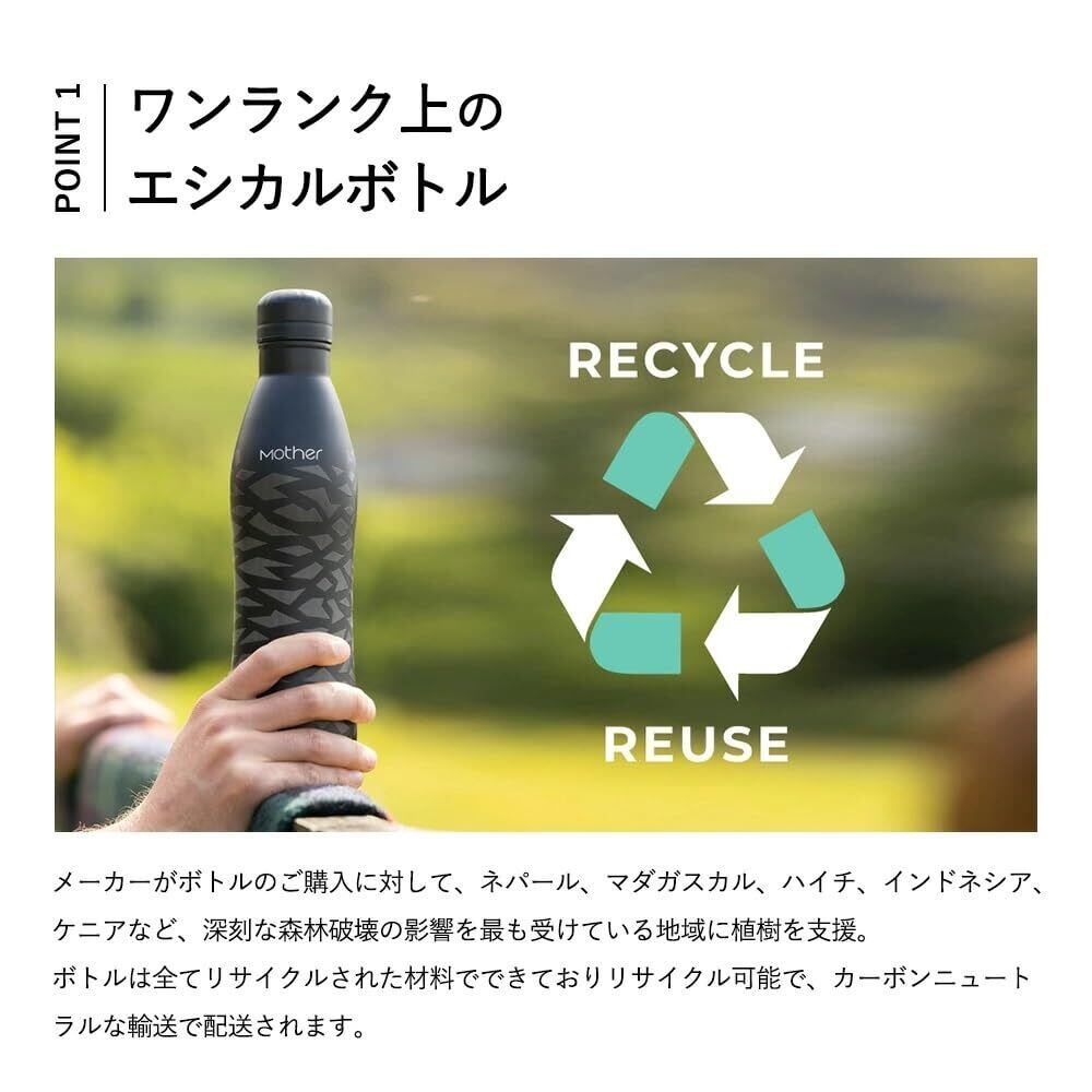 ローズピヴォイン ショップ(Rosepivoine Shop) Mother Reusables ステンレスボトル スリム 水筒 保温 保冷 魔法瓶 リサイクル素材使用 500ml 黒