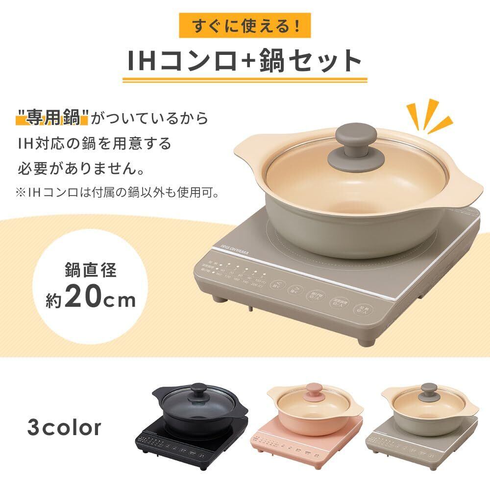 【在庫処分】アイリスオーヤマ IHコンロ1000W鍋セット IHKP-T39220-P ピンク