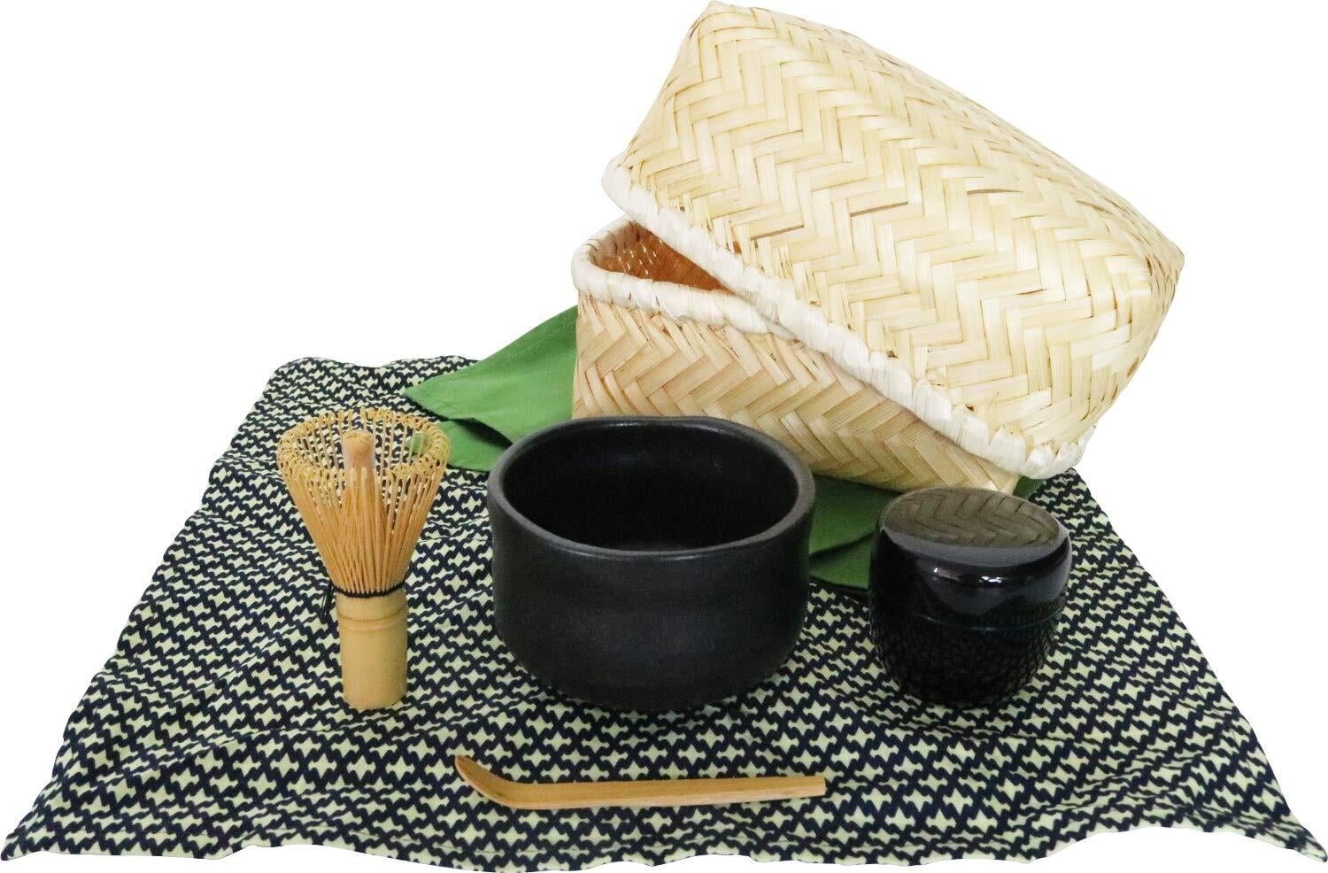 セット内容:抹茶碗×1、棗×1、ケース付茶せん×1、茶さじ×1、敷き布×1、布巾×1、竹製ケース×1