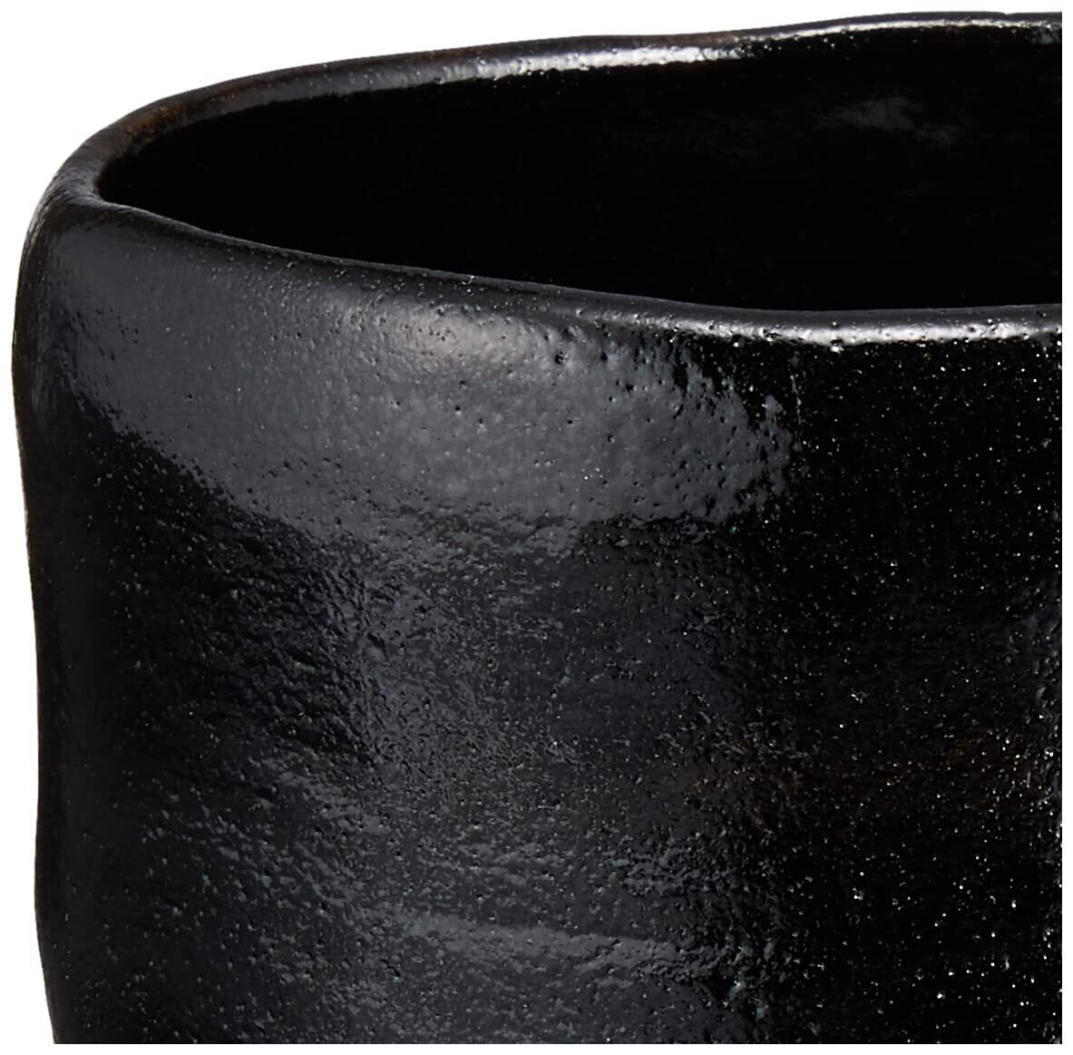高温の窯から引き出し水で冷ます際のヤットコの跡を残した、伝統的な焼成法の黒楽茶碗。