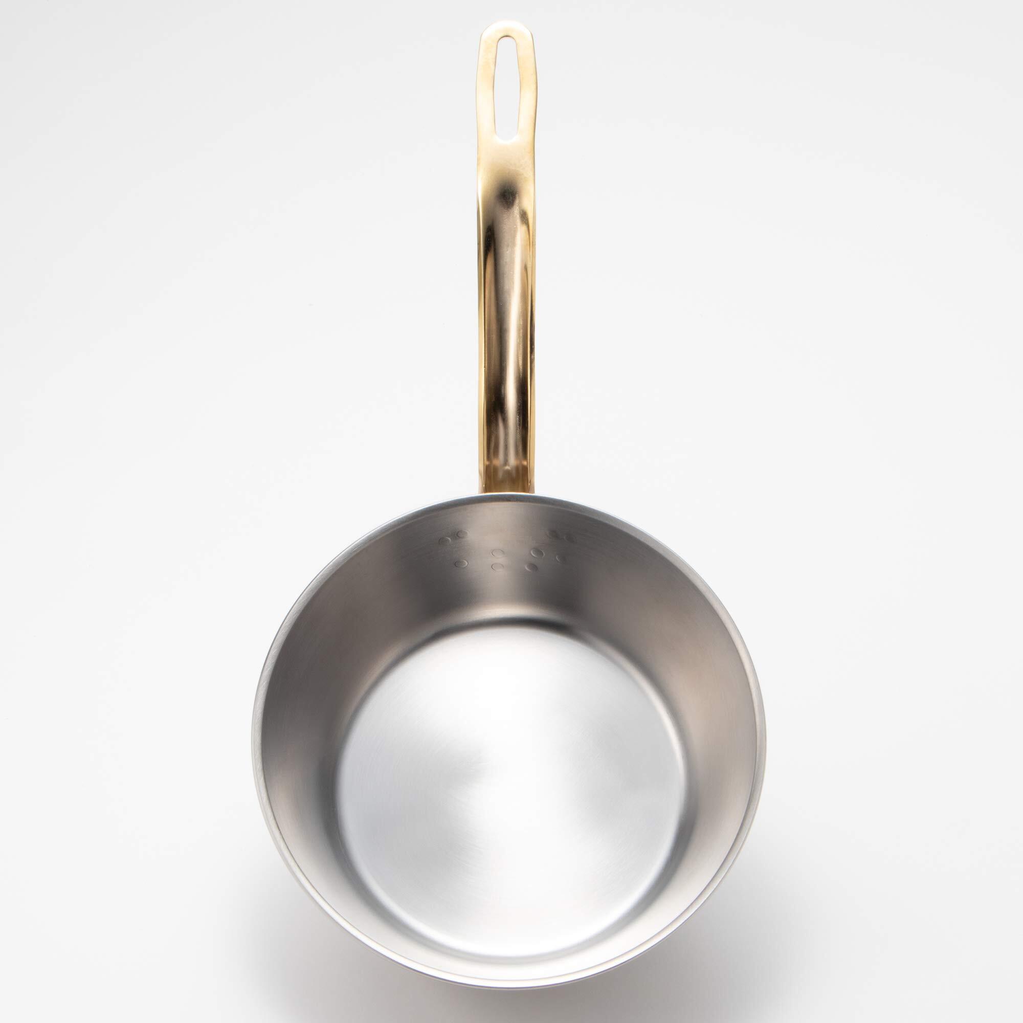 ●ハンドルは真鍮製にこだわり、本場フランスの料理人がなじんだ角度、 握り易さを採用し、プロユースにふさわしいグレード感
