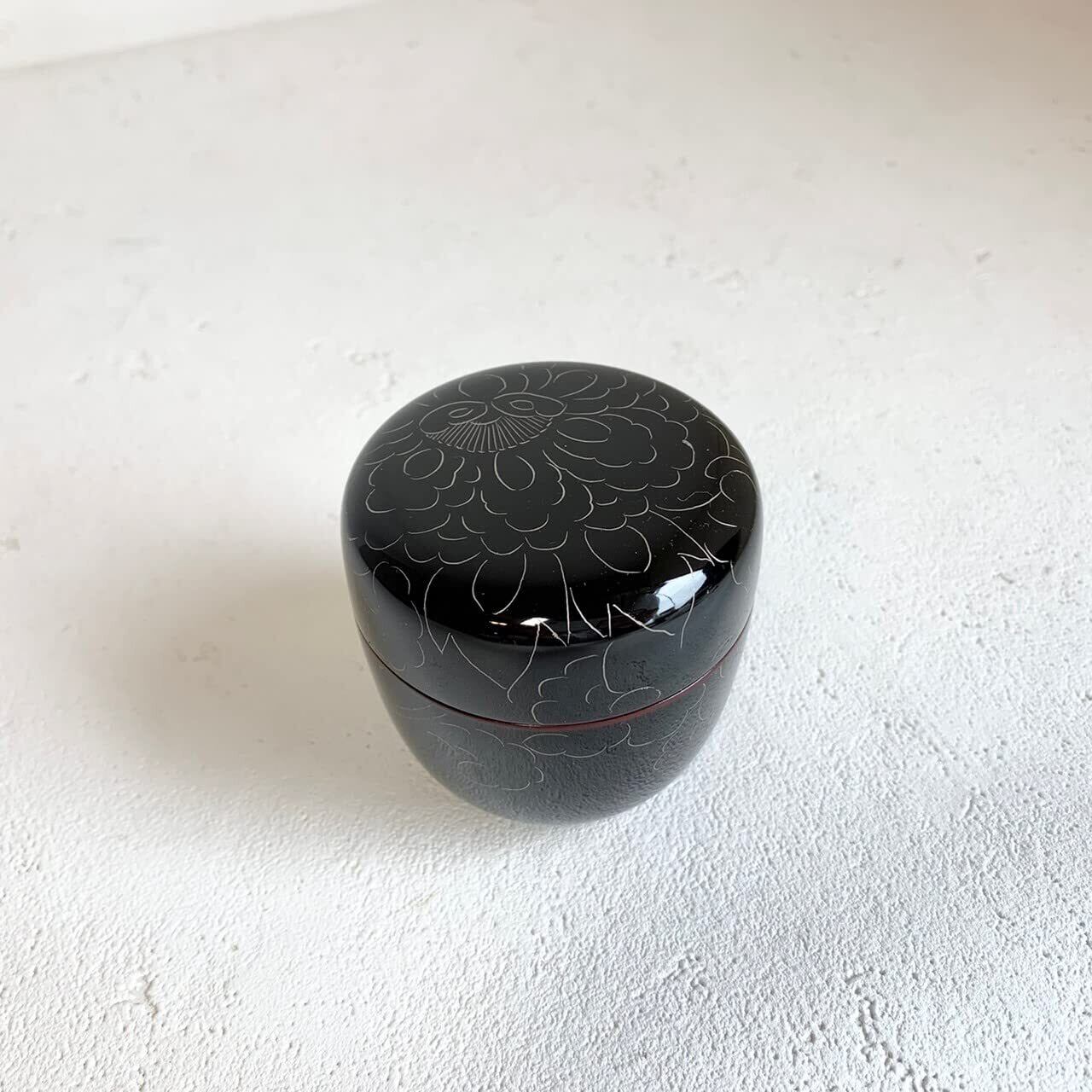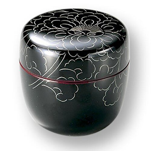 能村漆器店 越前塗 プラチナ牡丹彫 中棗 溜 11-17409