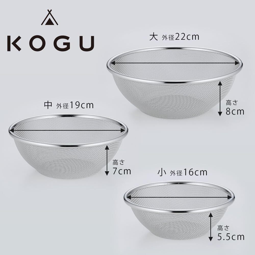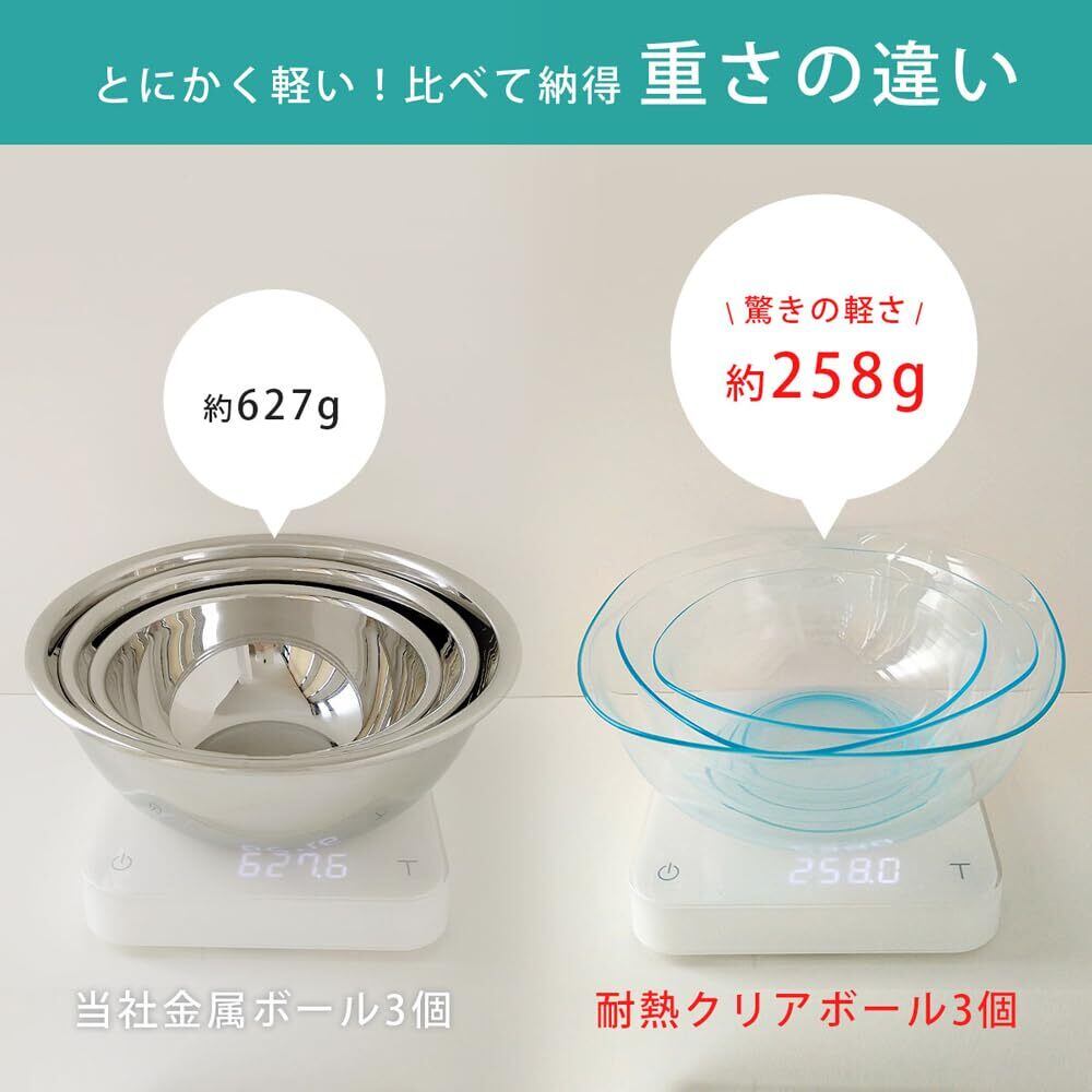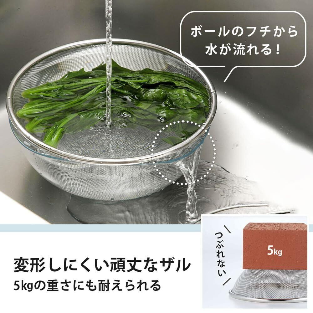 本体重量(約):ボール小/58g、ボール中/85g、ボール大/120g、ザル小/87g、ザル中/124g、ザル大/156g