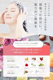【アロマティックフローラルの香り】太陽のエネルギーを受けて、真っ赤に色づいた果実や花々をイメージしました。天然精油とその他香料をブレンドすることで、甘くエレガントかつフレッシュな香りに仕上げました。