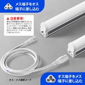 取付簡単:器具一体型,プラグアンドプレイ。付属のスナップオンコネクターで引っ掛けて、電源コードを差し込むだけで蛍光灯器具が点灯します