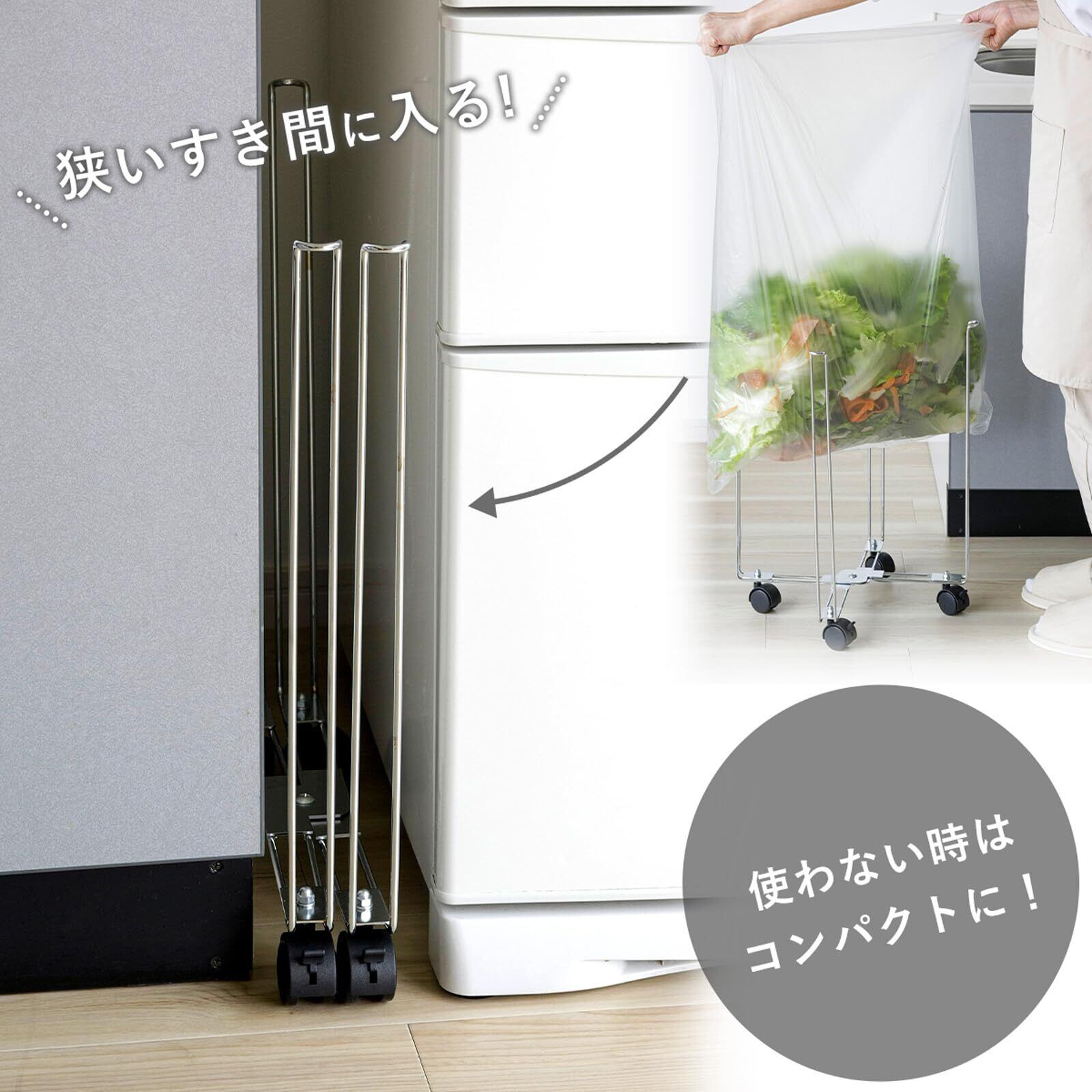 【人気商品】下村企販 折りたためる ゴミ袋ホルダー 【日本製】 45L 様々なサイズのゴミ袋に対応 たっぷり入る ゴミ袋が床に着かない キャスター付き 分別 リサイクル ダンボールストッカー ゴミ箱 ステンレス 燕三条 41810 | ニコニコSHOP