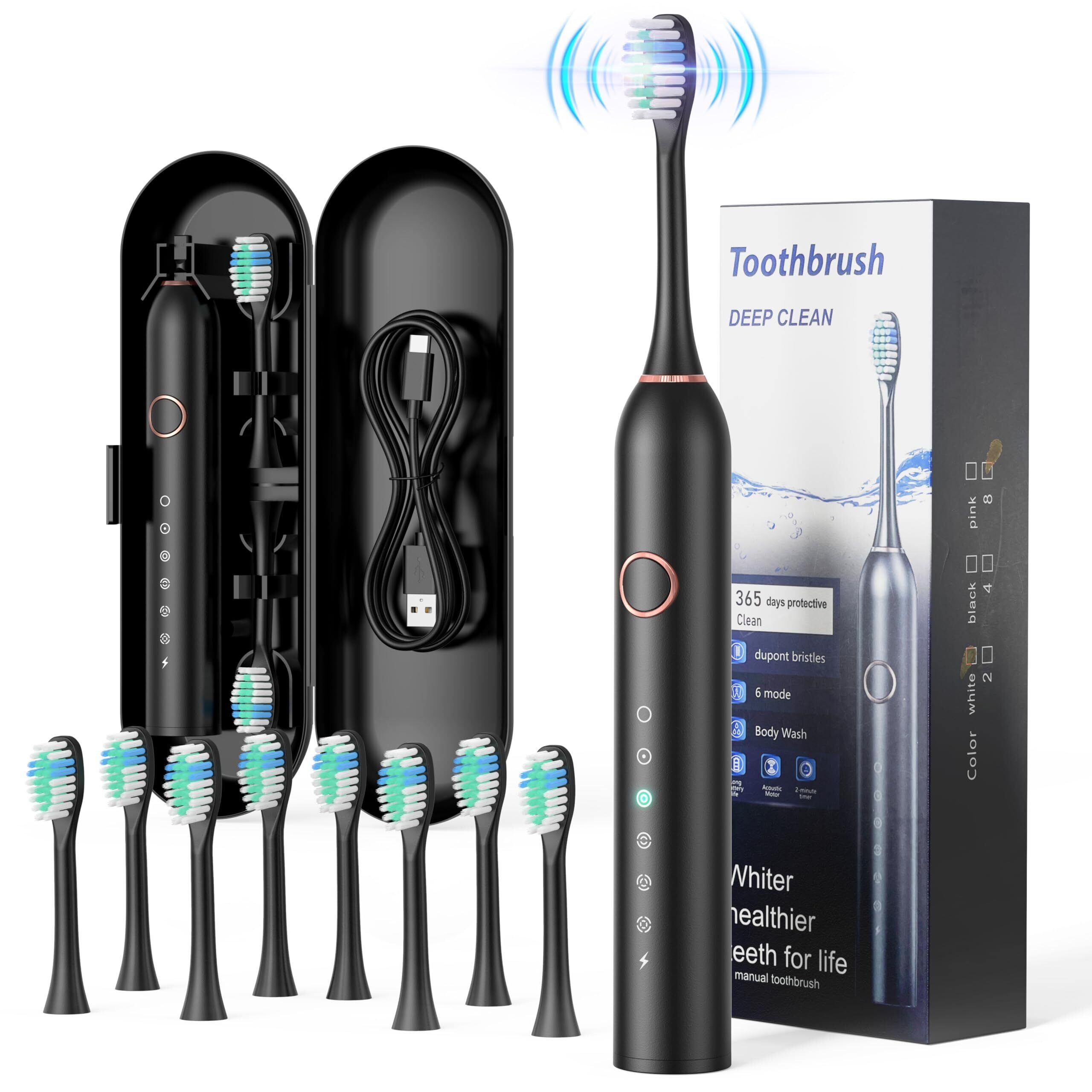 【人気商品】電動歯ブラシ 音波式 歯ブラシ 音波振動 替えブラシ8本付き IPX7防水 6モード 収納ケース付き 携帯便利 旅行 DF02