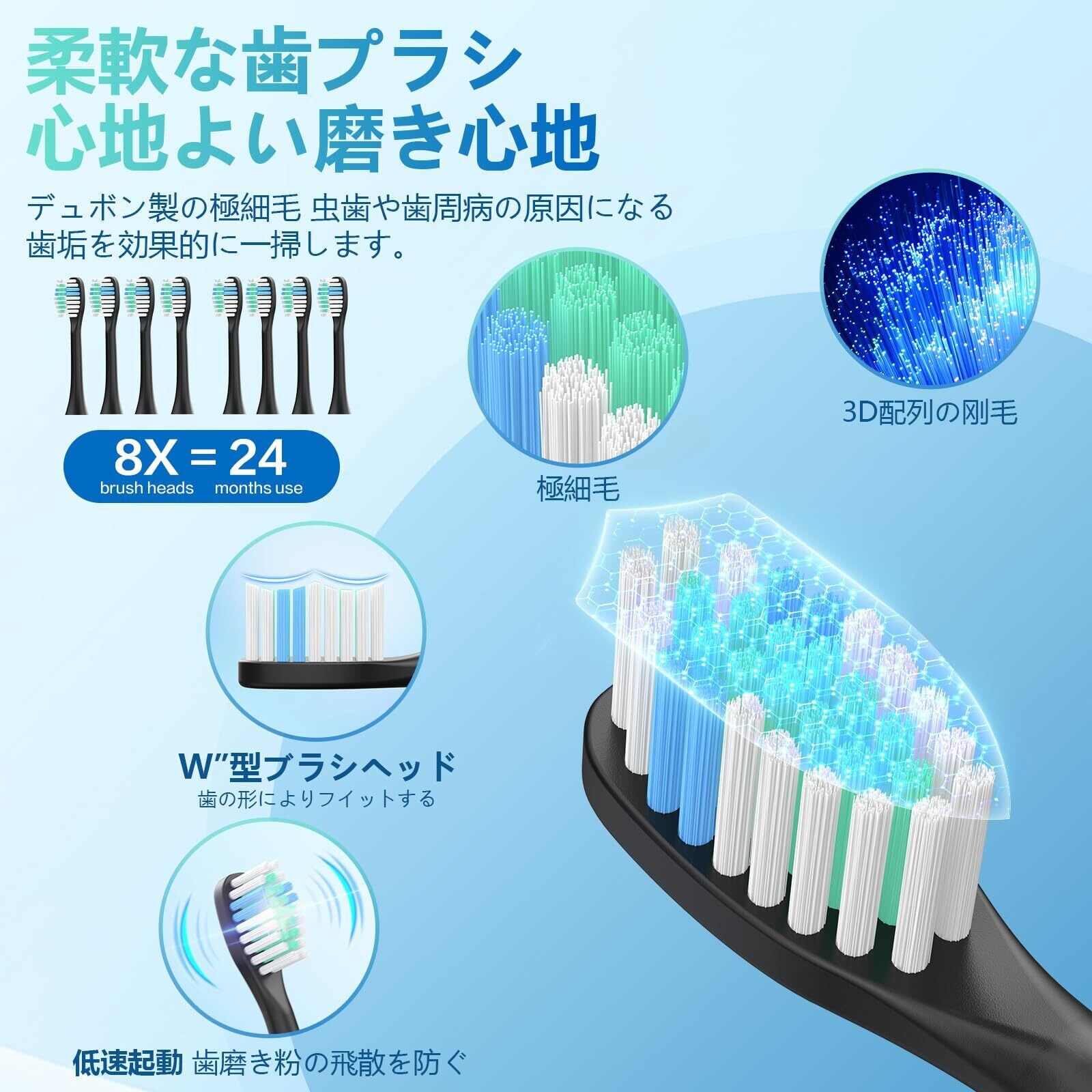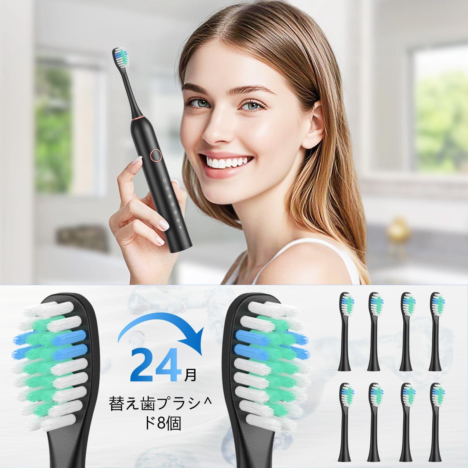 電動歯ブラシ 音波式 歯ブラシ 音波振動 替えブラシ8本付き IPX7防水 6モード 収納ケース付き 携帯便利 旅行 DF02