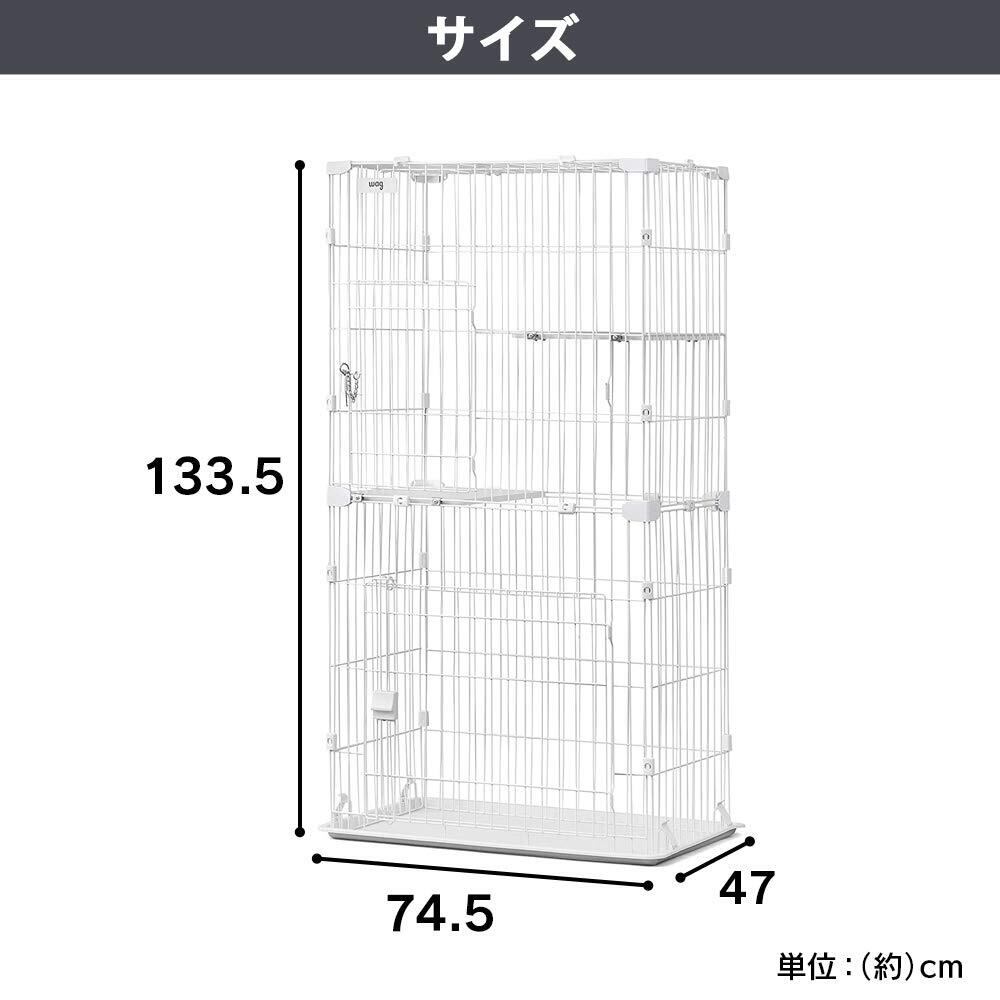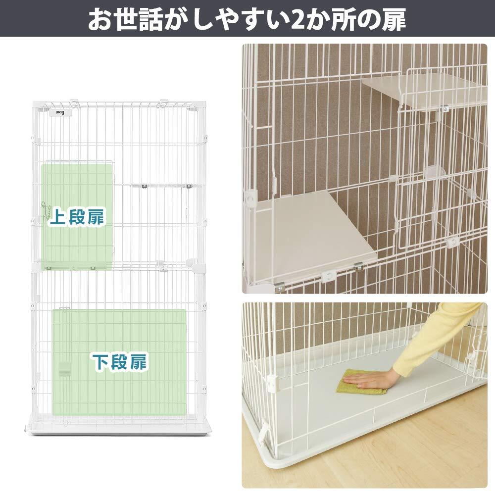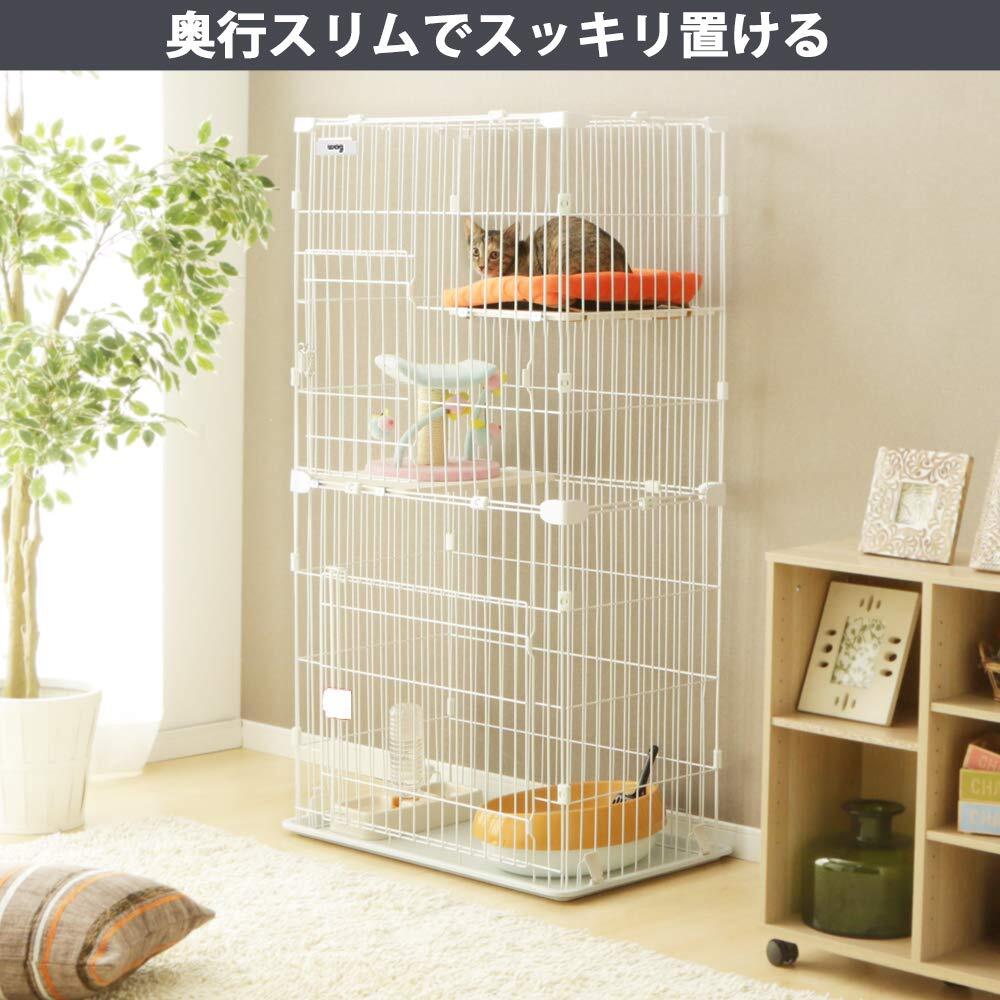 お部屋にスッキリ置けるスリムタイプ 猫用 丈夫な木製棚板2枚付 掃除しやすいフラットなトレー 大きな扉でお掃除や物の出し入れがラクラク 転倒防止チェーン付