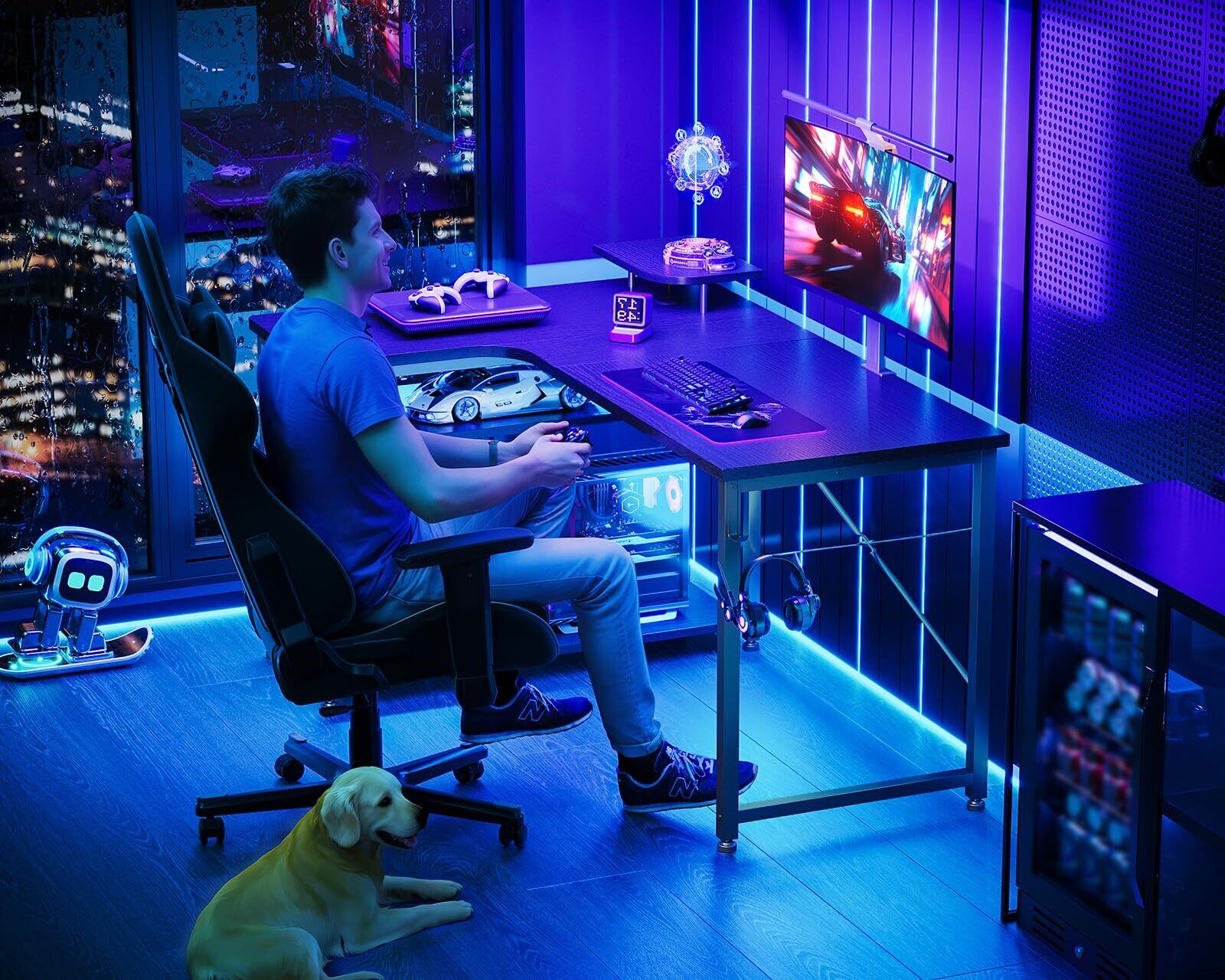【ゲームと仕事両立】L字ゲーミングデスクは実用性が高く、ゲームプレイ、在宅勤務、書斎机、勉強机など様々なシーンで大活躍!モニター台を利用して目線をあげることで、作業時の姿勢を改善し、テレワークが快適になり、作業効率も格段に上がります。