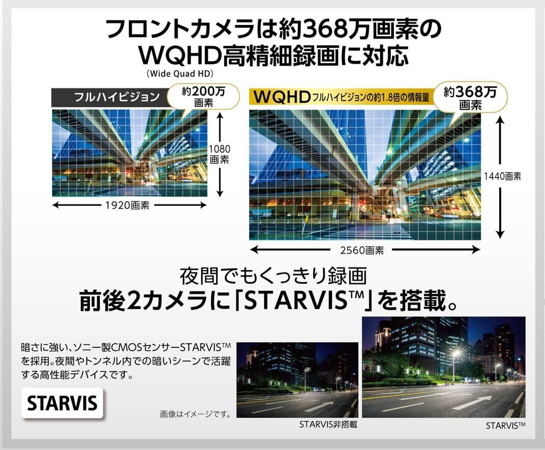 約368万画素の高画質。高精細WQHD録画 & STARVISTM搭載