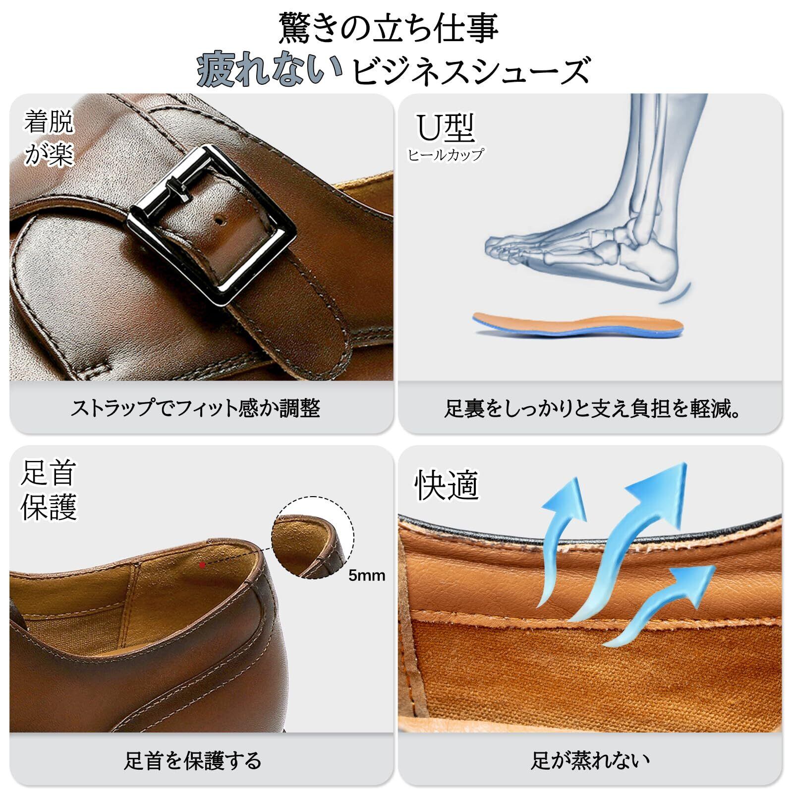 [フォクスセンス] ビジネスシューズ 革靴 本革 ドレスシューズ プレーントゥ 紳士靴 メンズ モンクストラップ