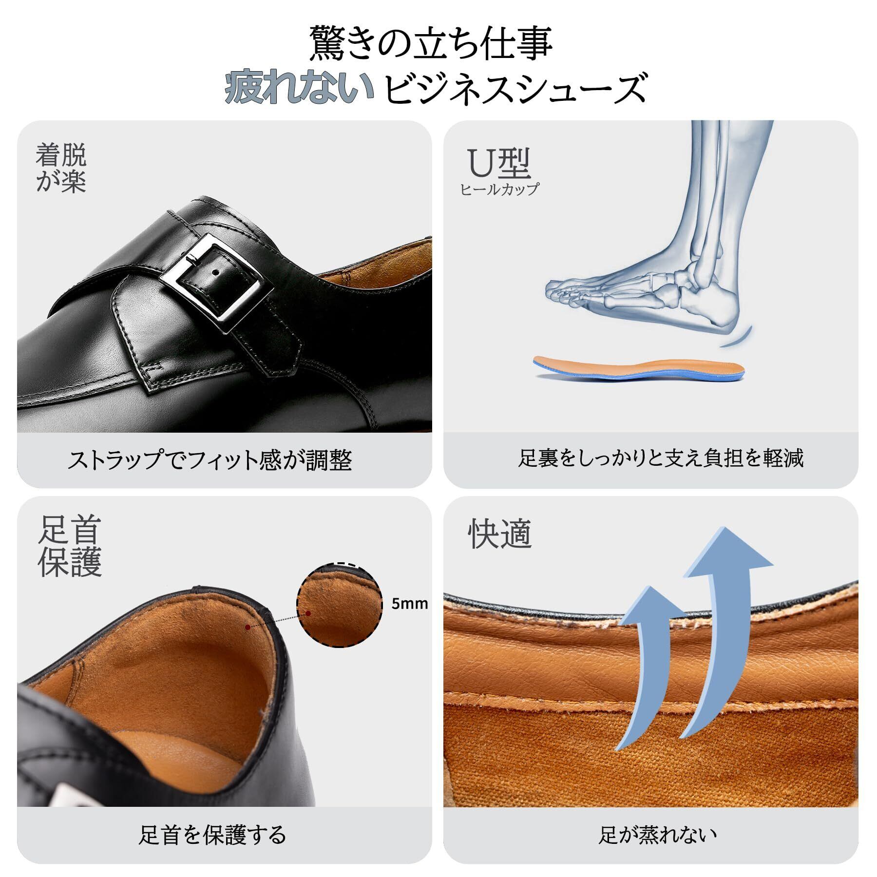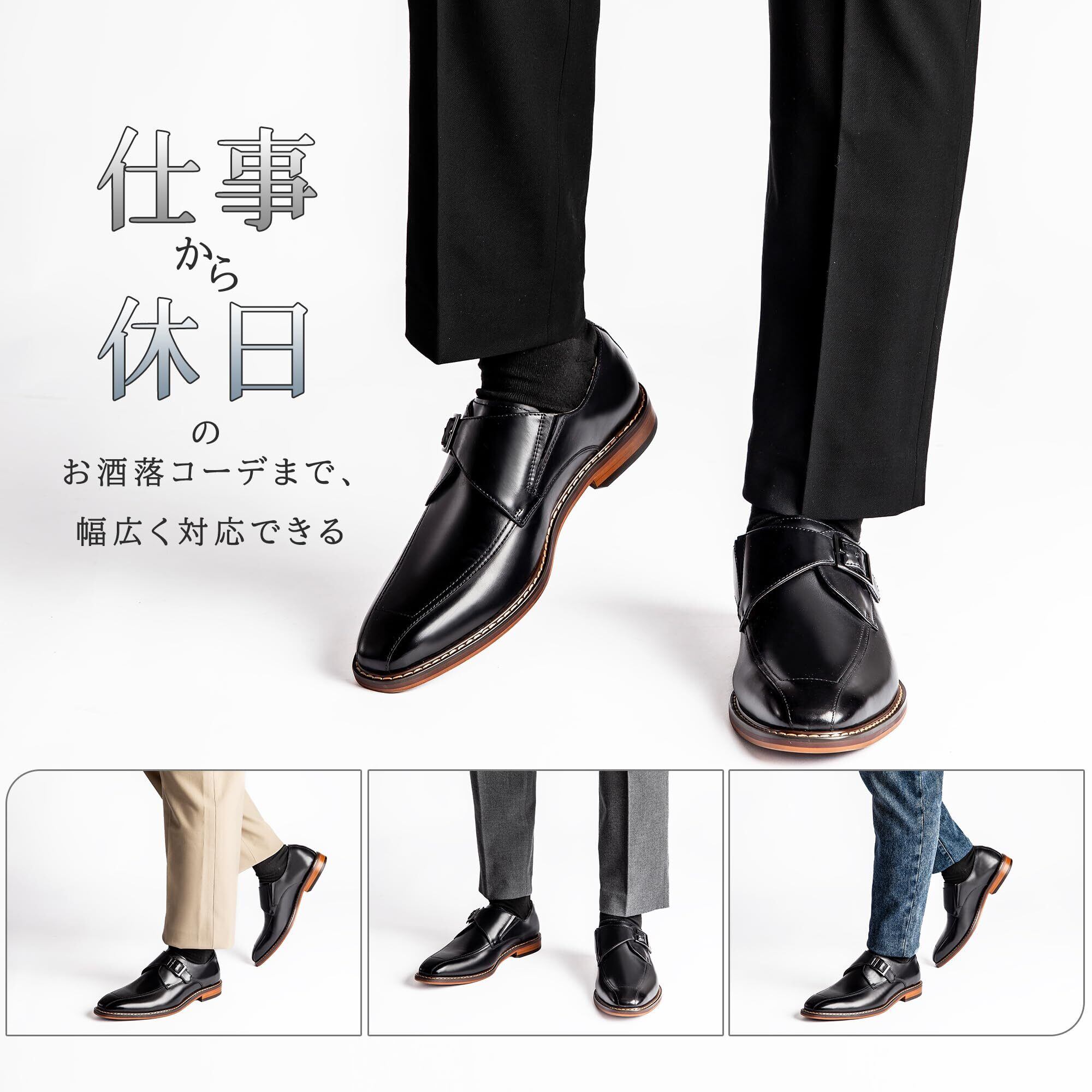 [フォクスセンス] ビジネスシューズ 革靴 メンズ ドレスシューズ 本革 モンクストラップ ストレートチップ 高級紳士靴 軽量・防水 フォーマル